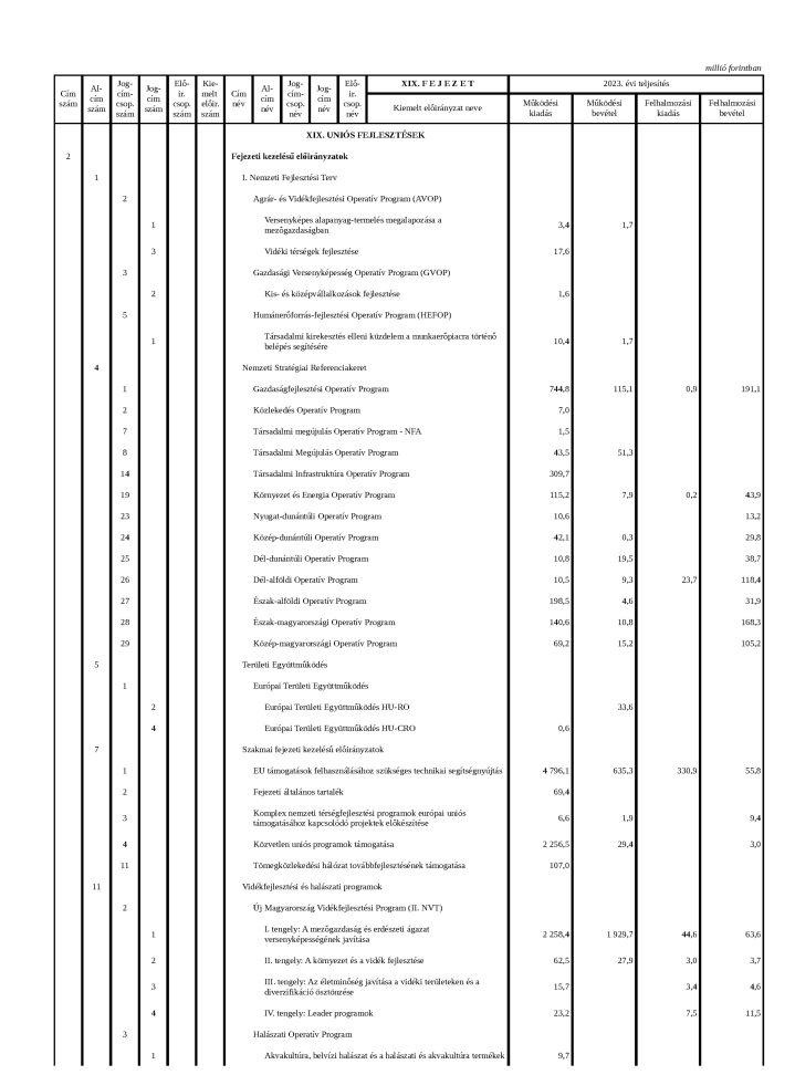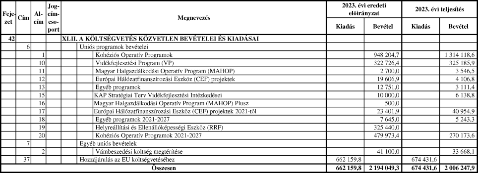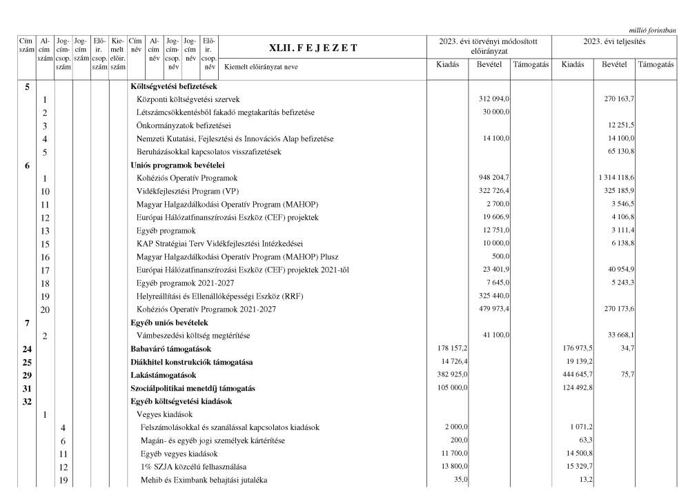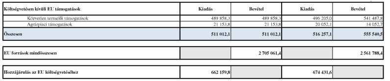 A 2023. évi európai uniós költségvetési kapcsolatok Költségvetésben megjelenő EU támogatások
