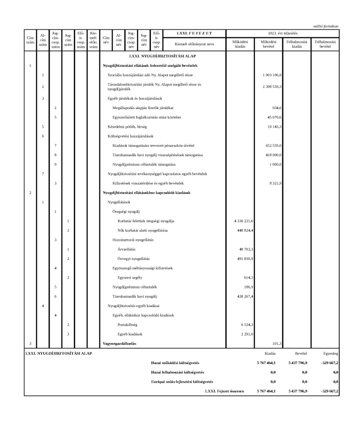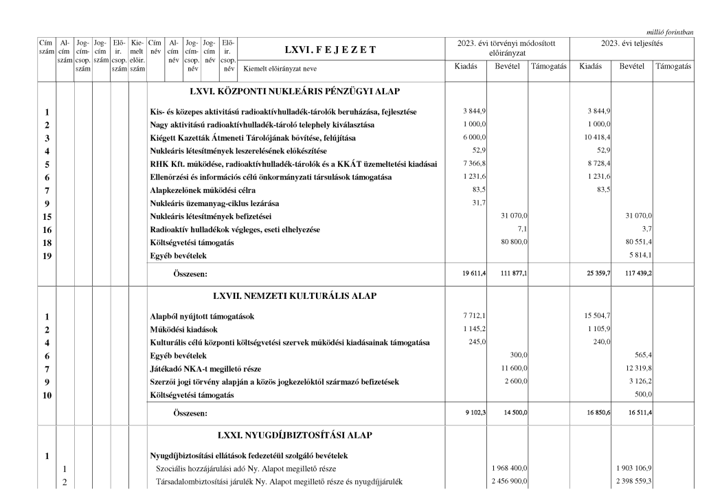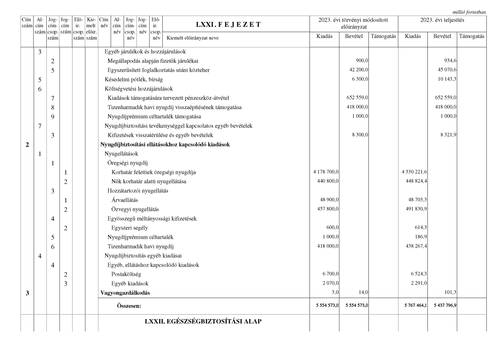 A TÁRSADALOMBIZTOSÍTÁS PÉNZÜGYI ALAPJAI 2023. ÉVI KÖLTSÉGVETÉSÉNEK VÉGREHAJTÁSA