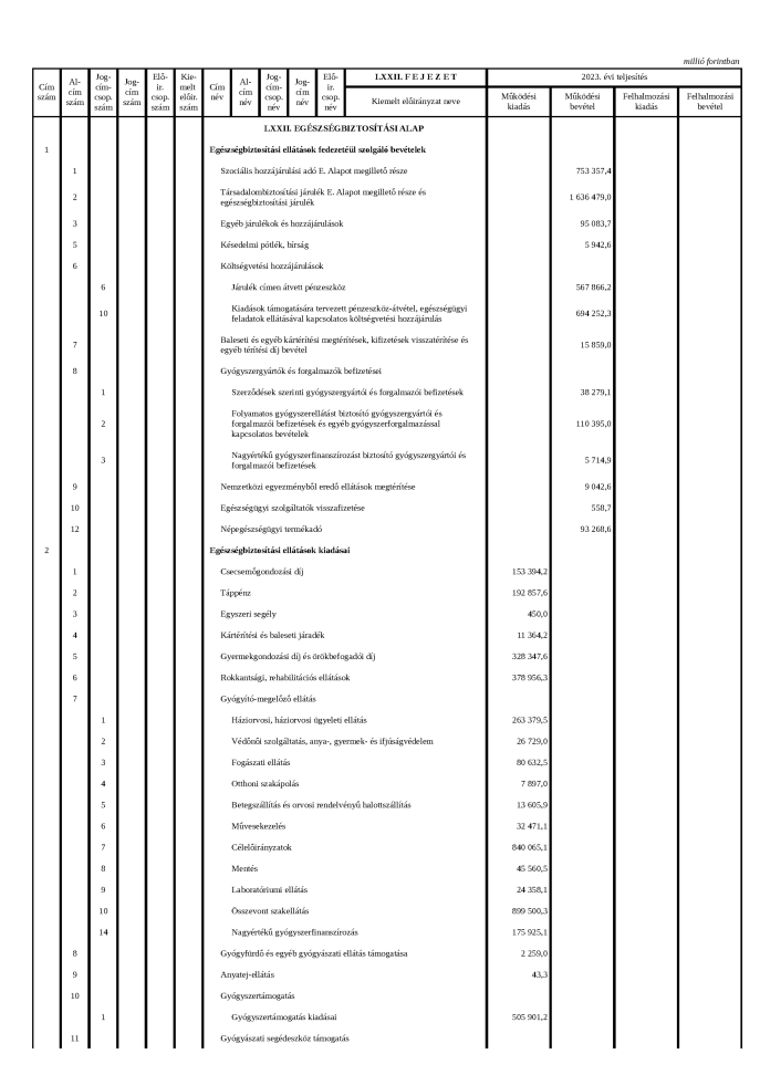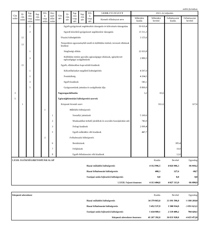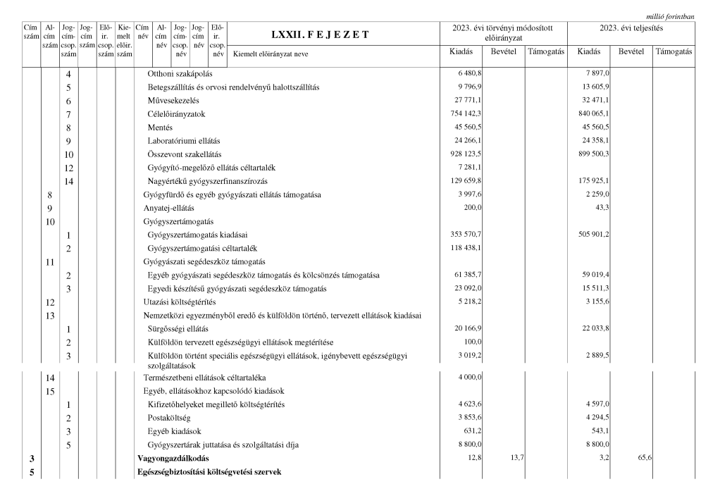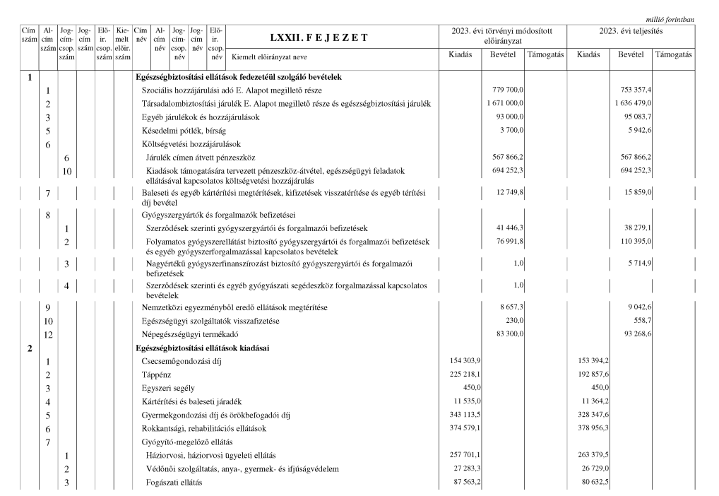 Az Országgyűlés jóváhagyja, hogy a LXXII. Egészségbiztosítási Alap fejezet