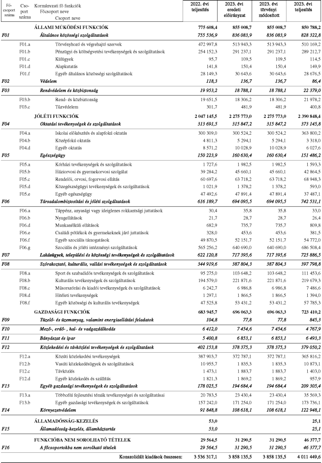 Önkormányzati alrendszer konszolidált funkcionális kiadásai (pénzforgalmi szemléletben)