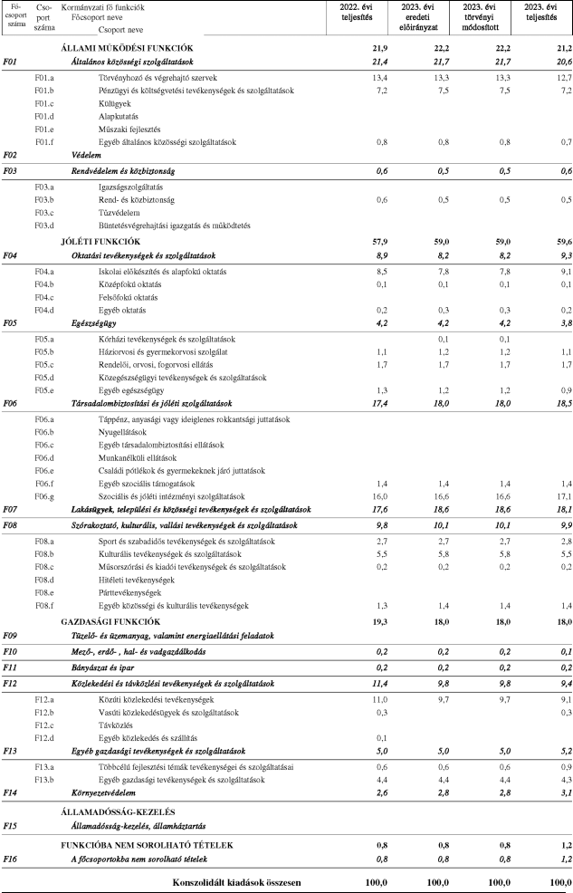 Az államháztartás konszolidált kiadásai (pénzforgalmi szemléletben)
