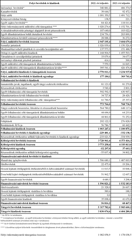 Az önkormányzati alrendszer folyó és felhalmozási mérlegeinek alakulása 2022 - 2023. években