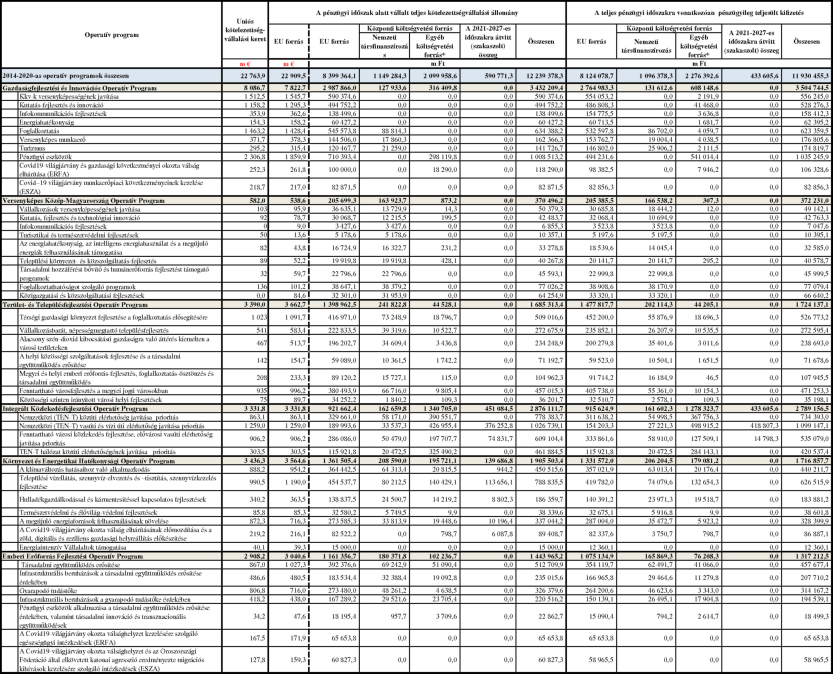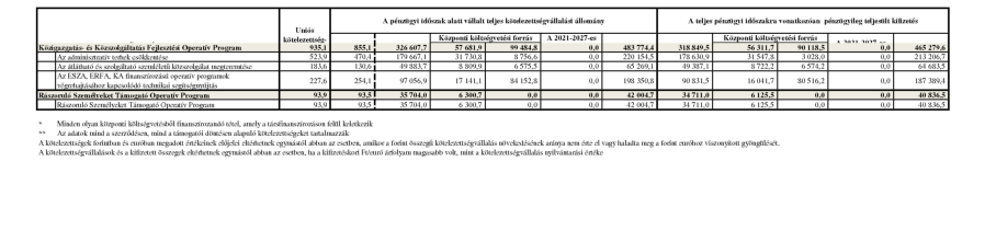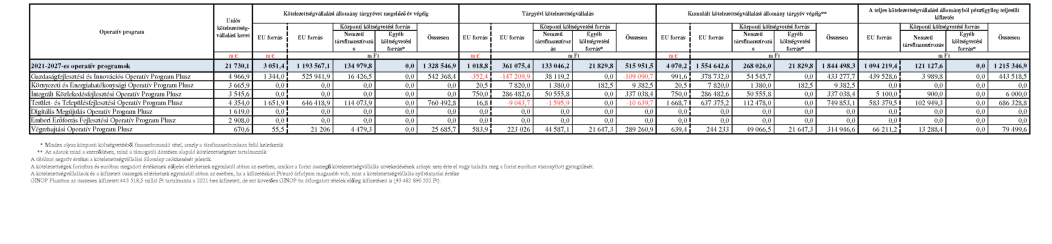 Kohéziós operatív programok (2021-2027) kötelezettségvállalási keretelőirányzatának és pénzügyi teljesülésének alakulása