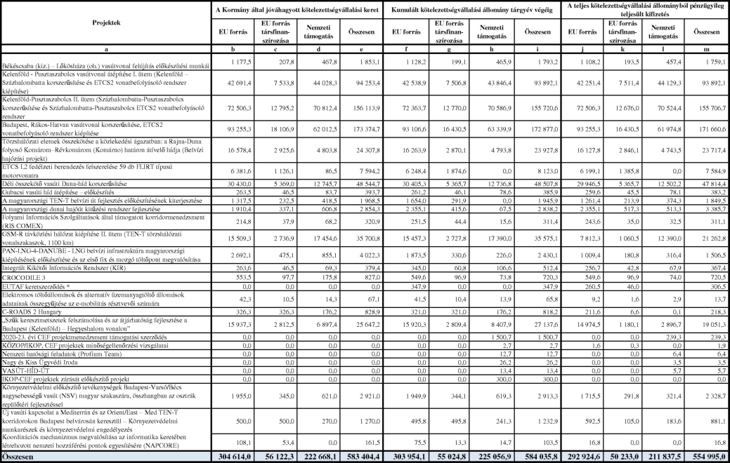 A CEF projektek kötelezettségvállalási keretelőirányzatának és pénzügyi teljesülésének alakulása