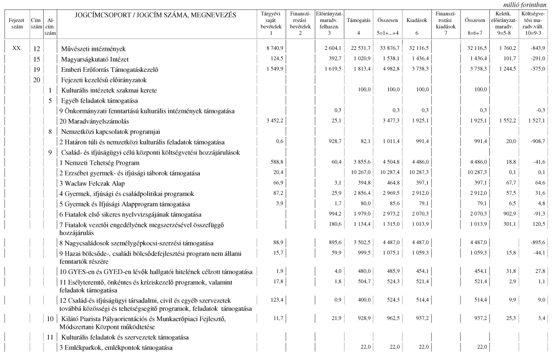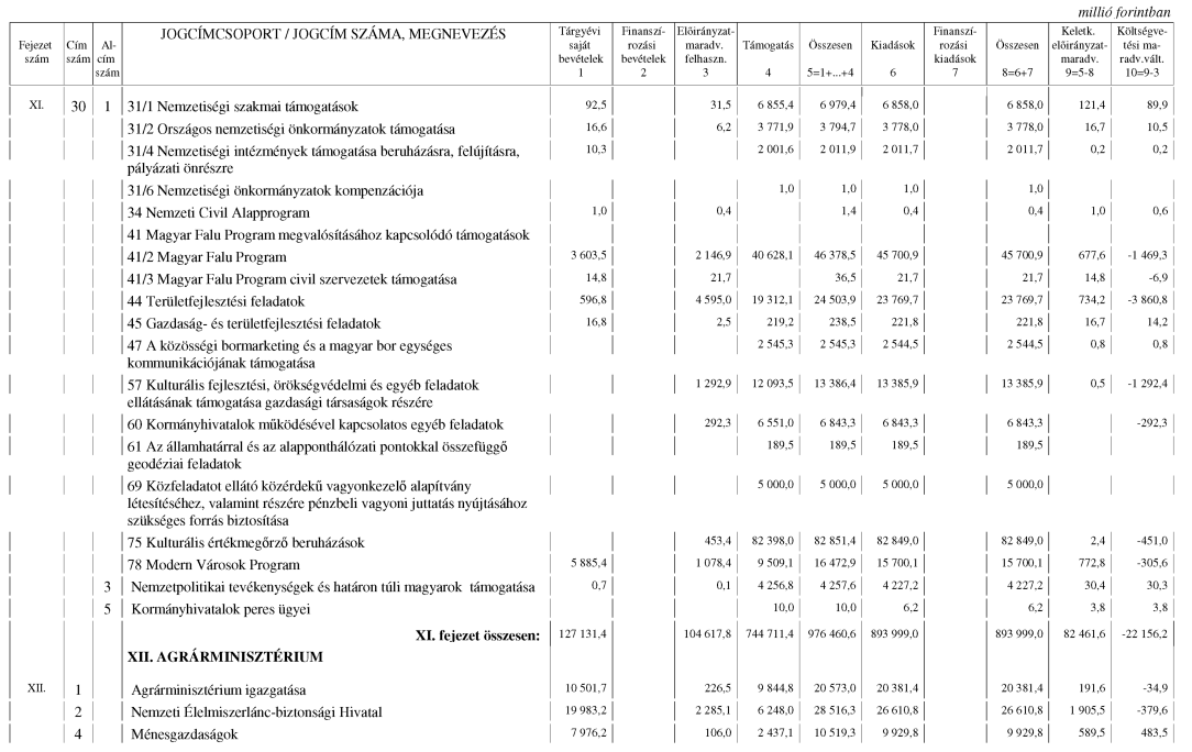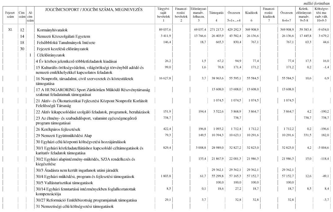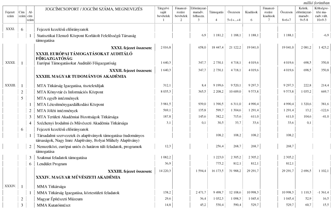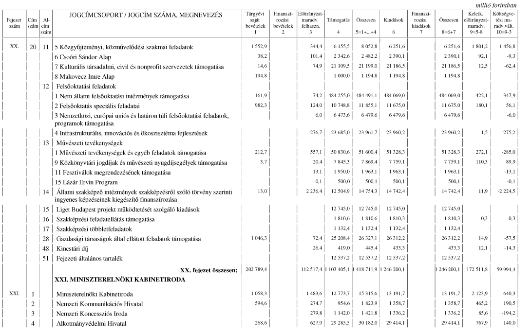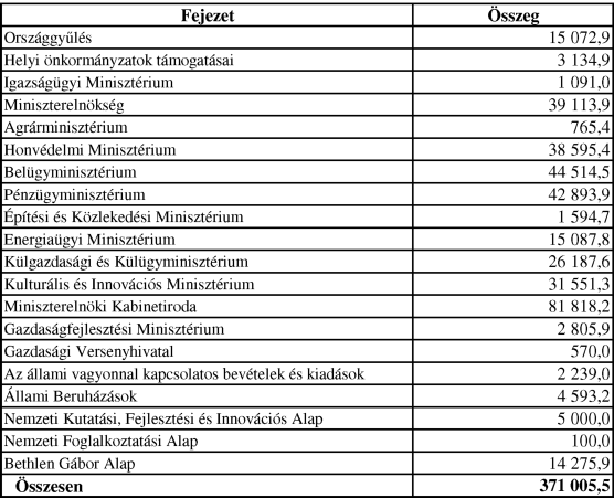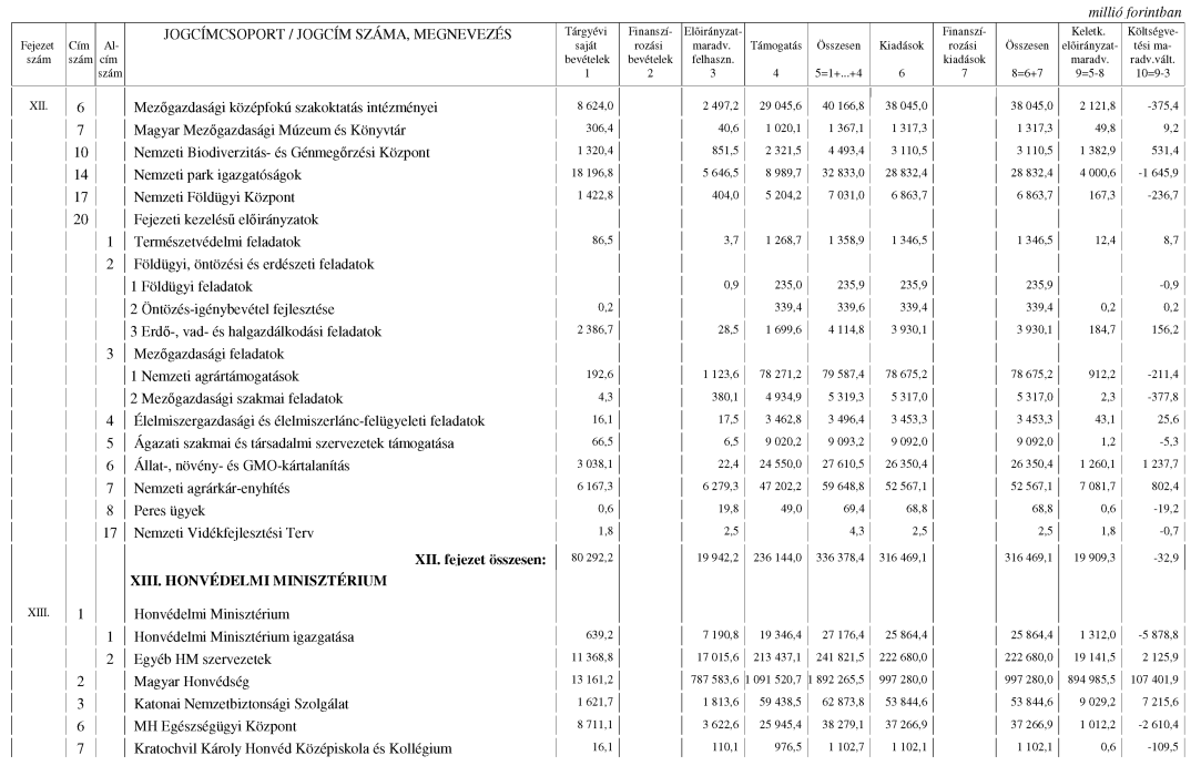 Költségvetési szervek és fejezeti kezelésű előirányzatok