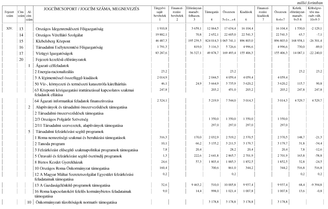 Az Országgyűlés megállapítja, hogy a települési önkormányzatok év közben 43 552,7 millió forint összegben igényeltek - a kincstár területi szervei javaslataira is figyelemmel - a települési önkormányzatok általános működéséhez és ágazati feladataihoz kapcsolódó támogatásokat. A települési önkormányzatok együttesen 29 143,3 millió forint összegben mondtak le év közben e forrásokról. Az önkormányzati körön kívülre történő feladatátadás következtében 85,1 millió forint összegben csökkent az előirányzat.