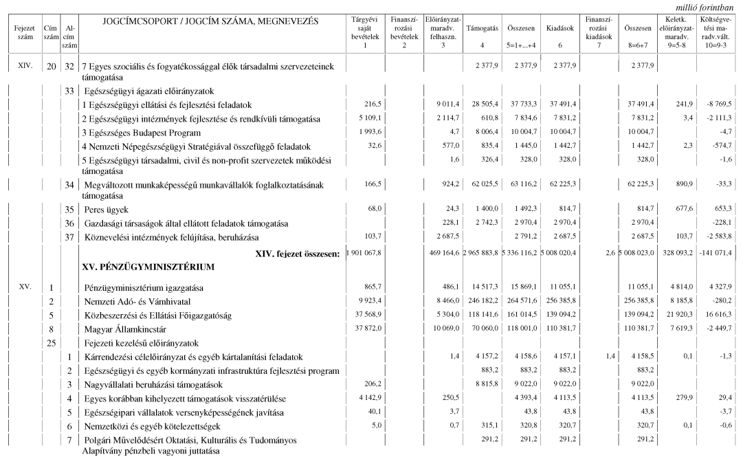 Az Országgyűlés elrendeli, hogy a társadalombiztosítás pénzügyi alapjainak közreműködésével a XV. Pénzügyminisztérium fejezet, a XLII. A költségvetés közvetlen bevételei és kiadásai fejezet terhére finanszírozott ellátások megtérítésének és kiadásainak különbözeteként 2024. december 31-éig