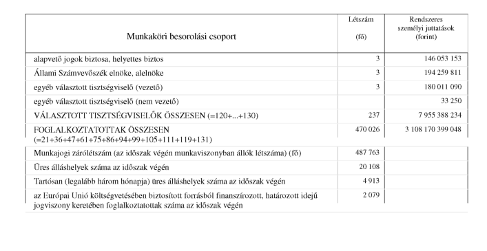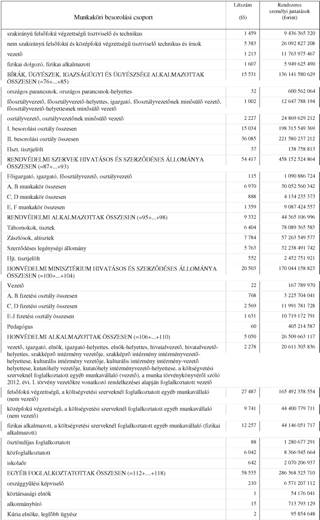 Költségvetési szerveknél foglalkoztatottak létszáma és rendszeres személyi juttatása 2023. évben