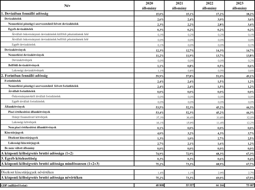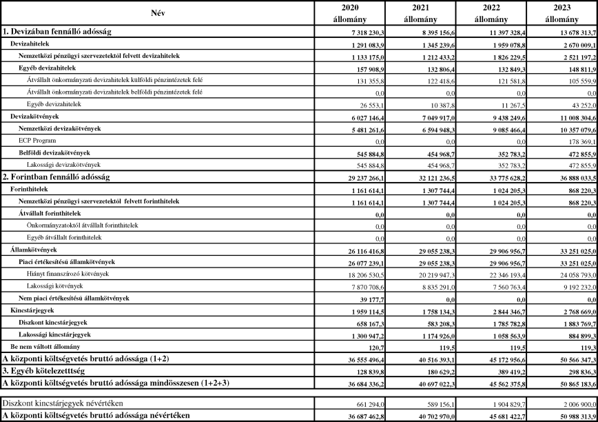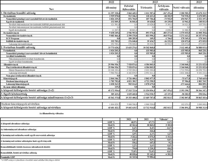 Az Országgyűlés jóváhagyja, hogy a Gst. 11. § (1) bekezdésének megfelelően a központi költségvetés deviza- és forintadósság-állományából 2023-ban az államháztartásért felelős miniszter az adósságtörlesztési számla terhére