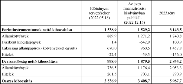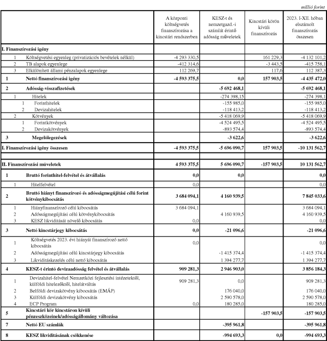 A központi költségvetés finanszírozási és adósságműveletei 2023. évi, előzetes adatok alapján