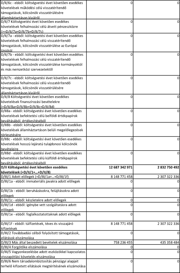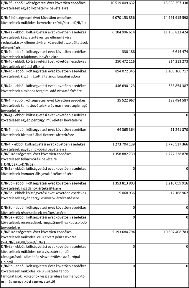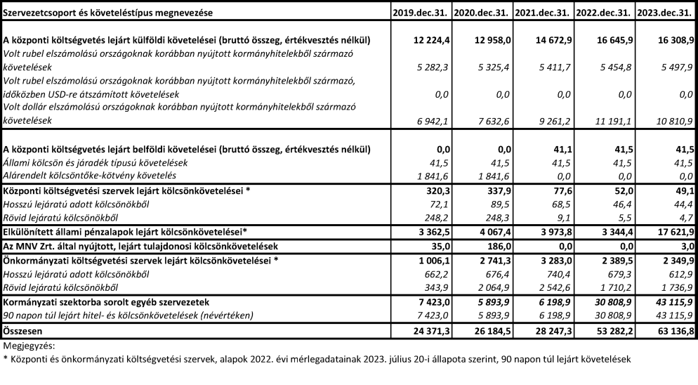 Az önkormányzati alrendszerből nyújtott, nem teljesülő hitel- és egyéb követelések állománya