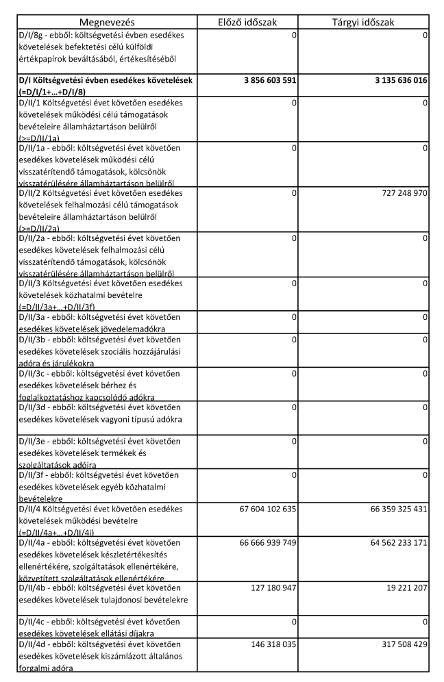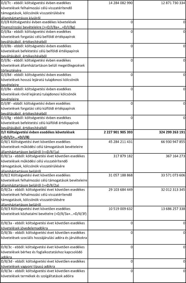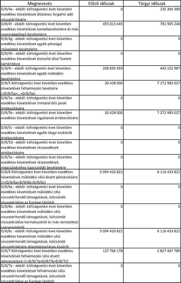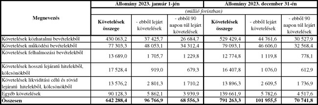 A nem teljesítő kölcsönkövetelések előzetes állománya (millió forintban) (az Áht. 90. § (3) j) pontban előírt tájékoztatás)