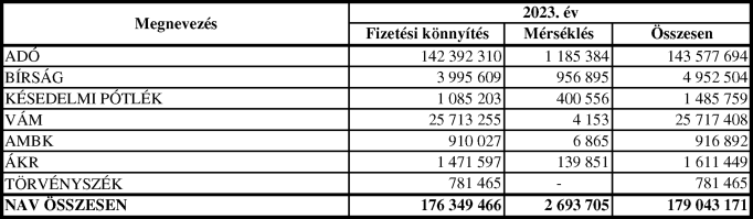 a 2023. évben engedélyezett fizetési kedvezményi ügyekről