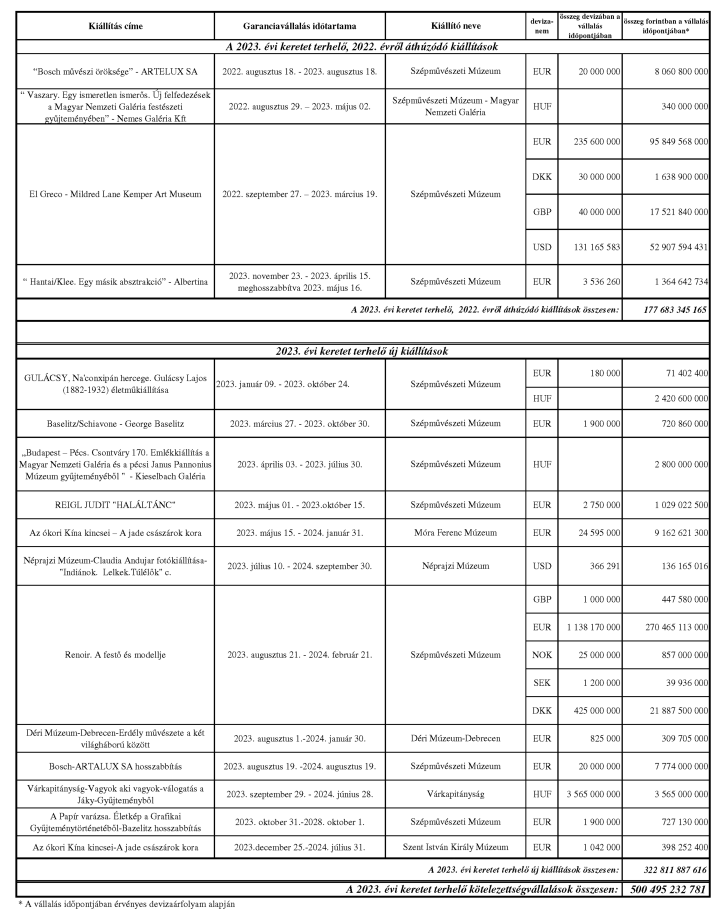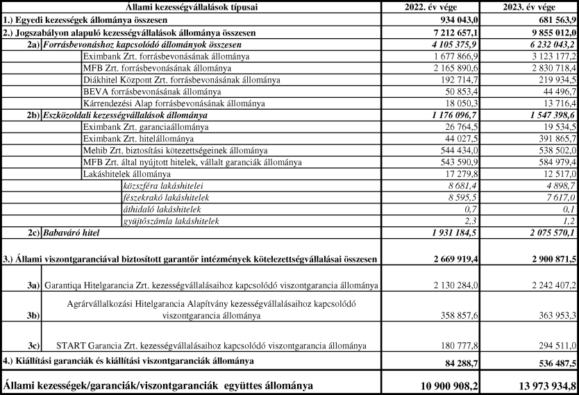 Az állam által vállalt kezességek/garanciák/viszontgaranciák 2022. év és 2023. év végi állományi adatai