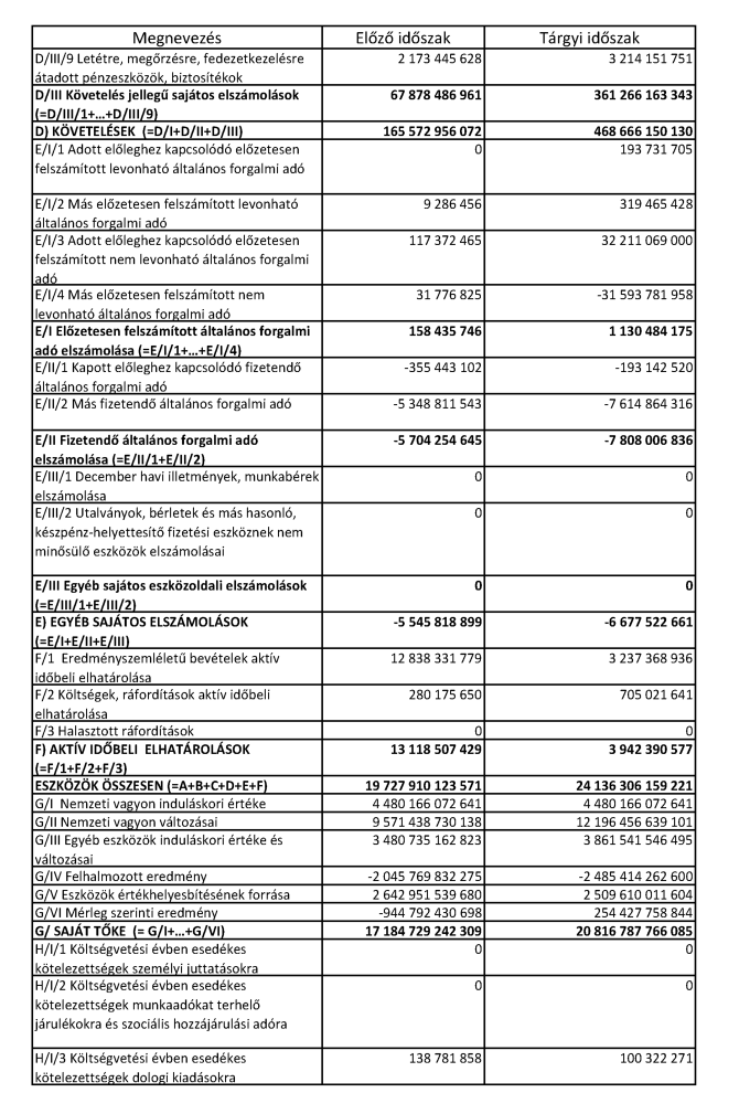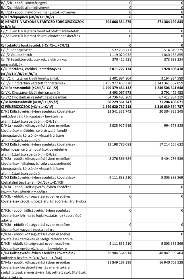 A központi letéti számlán 2023-ban nem volt forgalom.