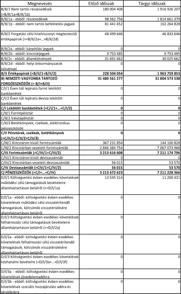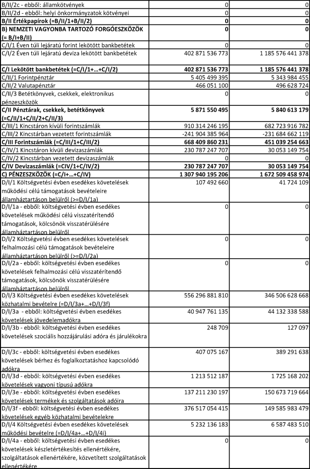Önkormányzati alrendszer mérlege (pénzforgalmi szemléletben)