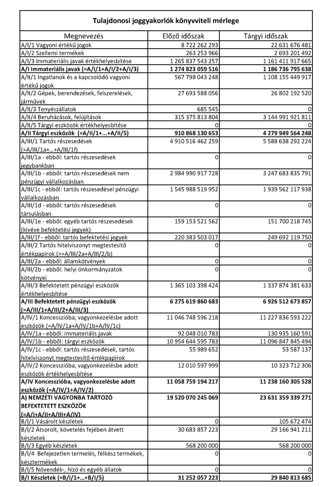 Nemzetgazdasági elszámolások könyvviteli mérlege (tulajdonosi joggyakorlók nélkül)
