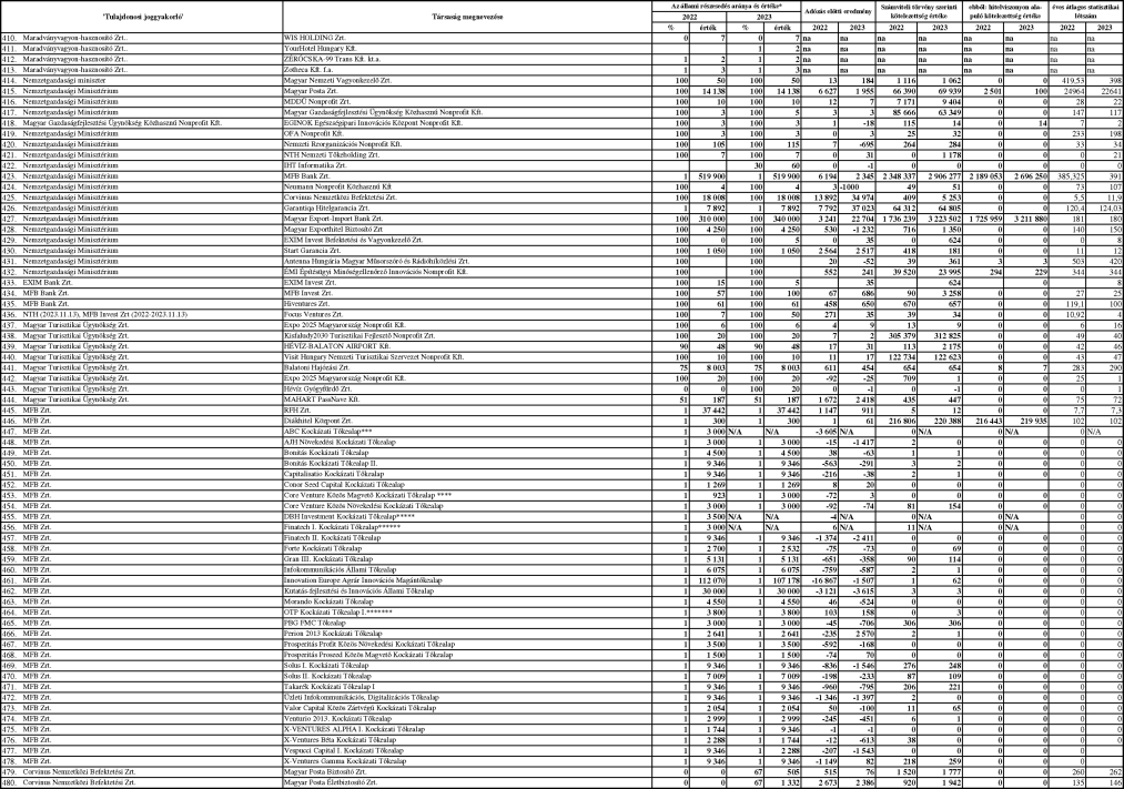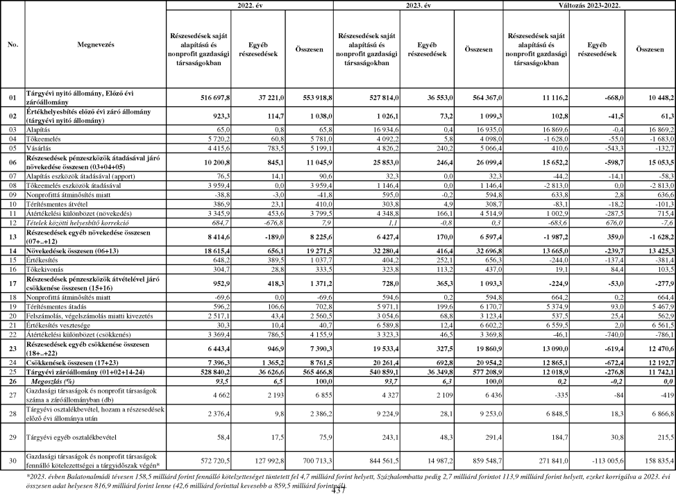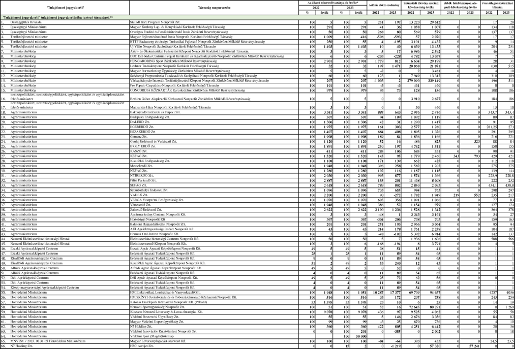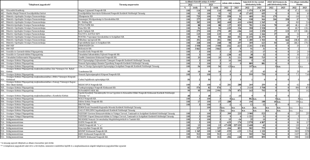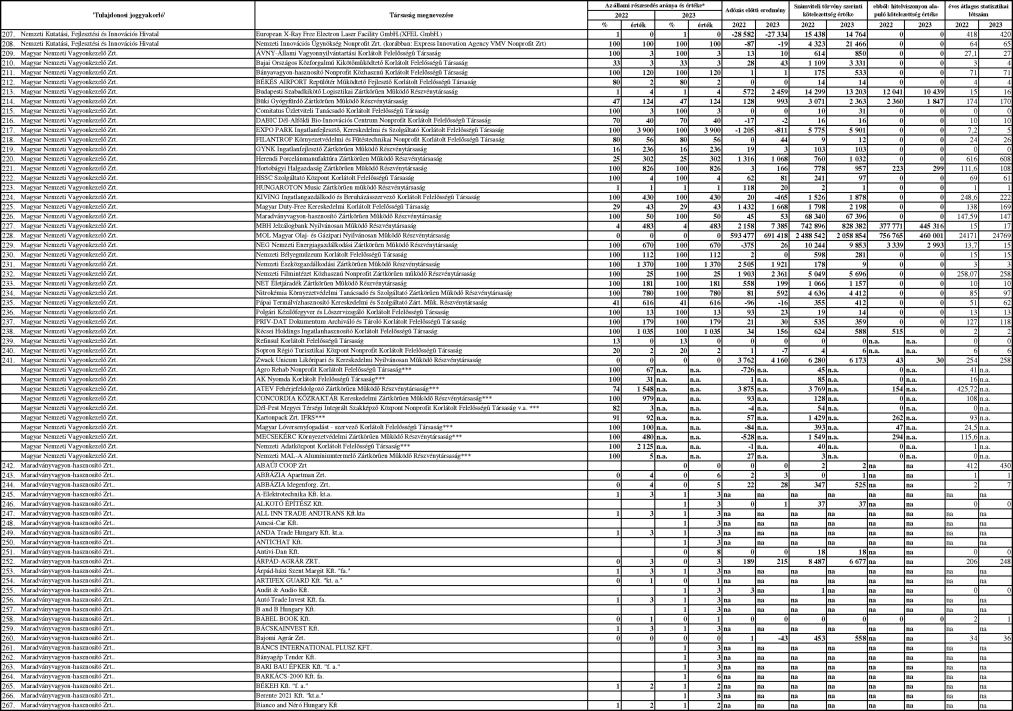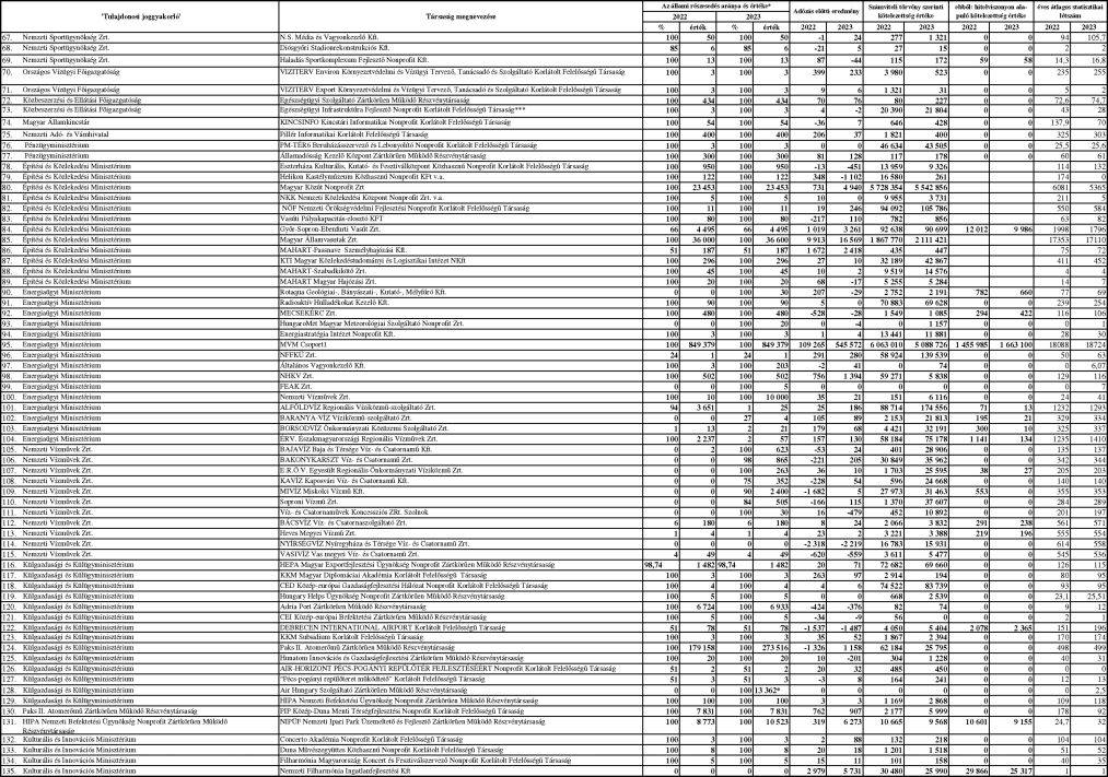 Az állam tulajdonában álló gazdasági társaságok állami részesedései, eredményeik és kötelezettség-állományuk alakulása 2022-2023. években