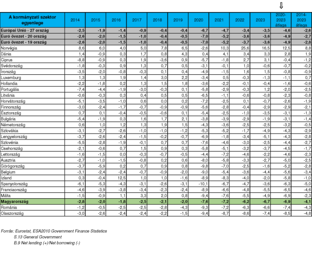 A kormányzati szektor egyenlege az EU országaiban, Izlandon és Norvégiában
