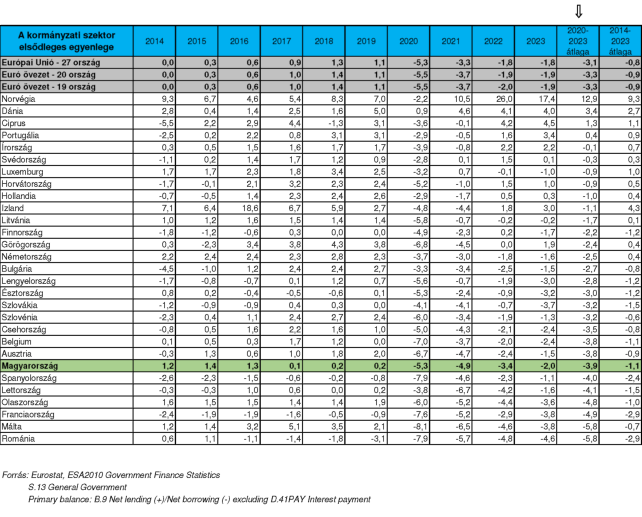 A kormányzati szektor elsődleges egyenlege az EU országaiban, Izlandon és Norvégiában