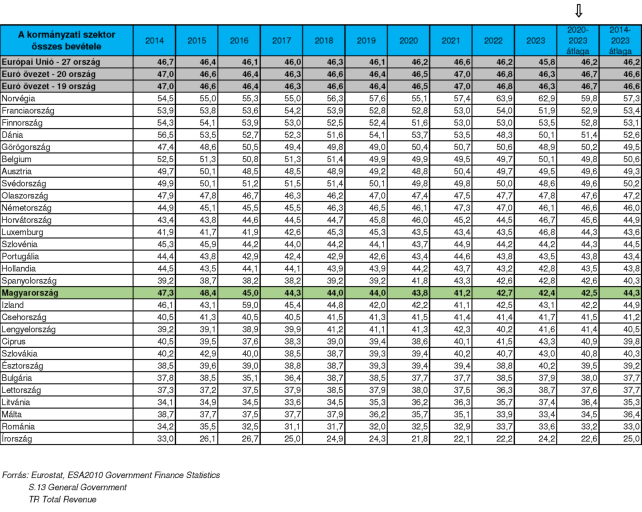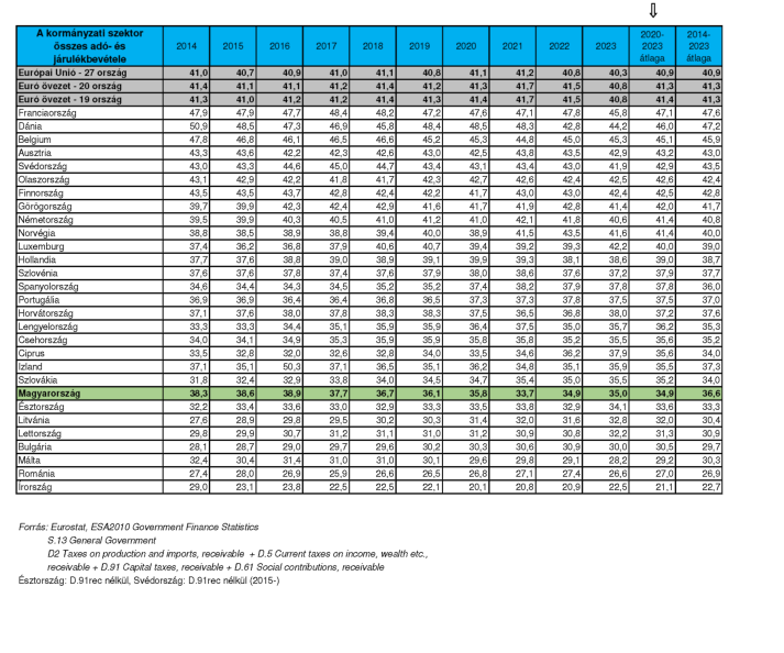 A kormányzati szektor adó- és járulékbevétele az EU országaiban, Izlandon és Norvégiában
