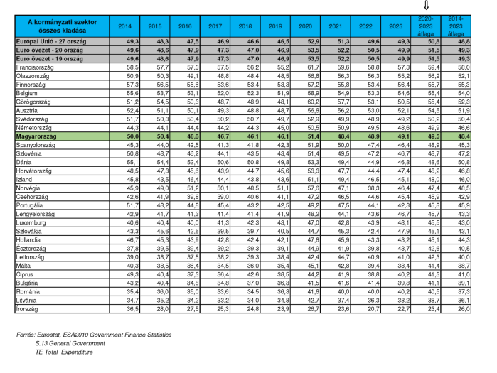 A kormányzati szektor kiadásai az EU országaiban, Izlandon és Norvégiában