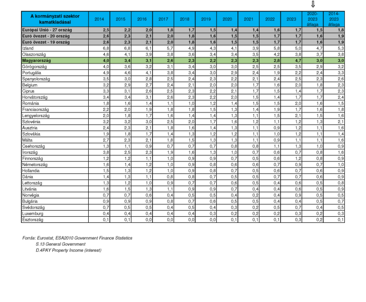 A kormányzati szektor kamatkiadásai az EU országaiban, Izlandon és Norvégiában