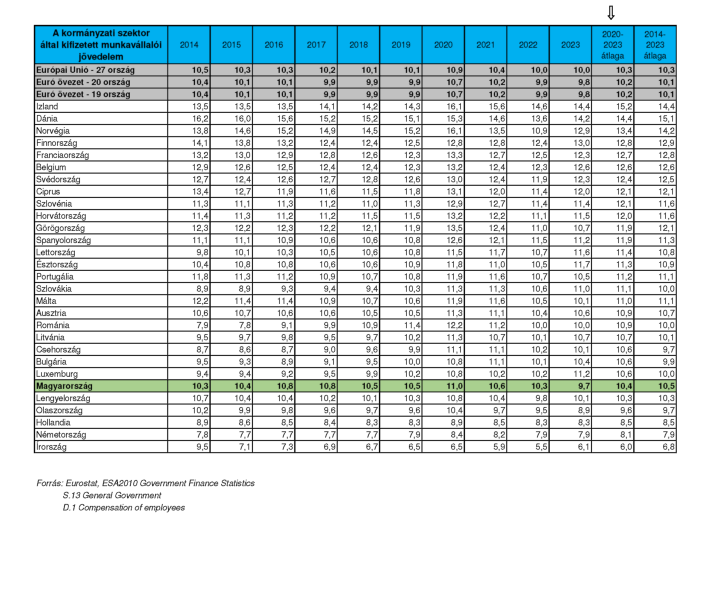 A kormányzati szektor által kifizetett munkavállalói jövedelem az EU országaiban, Izlandon és Norvégiában