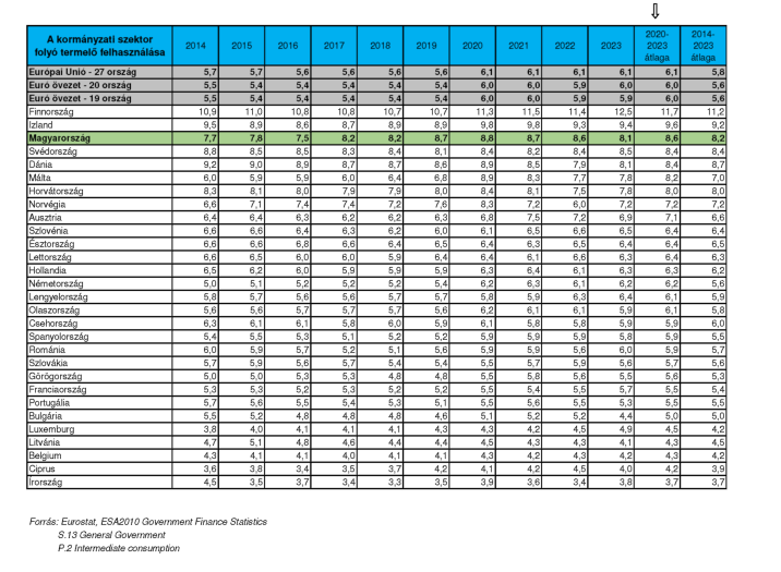 A kormányzati szektor folyó termelő felhasználása az EU országaiban, Izlandon és Norvégiában
