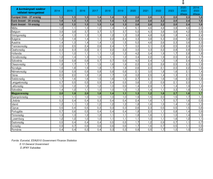 A kormányzati szektor vállalati támogatásai az EU országaiban, Izlandon és Norvégiában