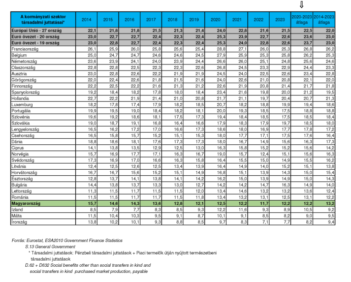 A kormányzati szektor társadalmi juttatásai az EU országaiban, Izlandon és Norvégiában