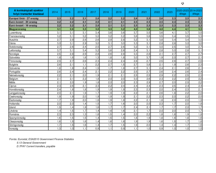 A kormányzati szektor folyó transzfer kiadásai az EU országaiban, Izlandon és Norvégiában