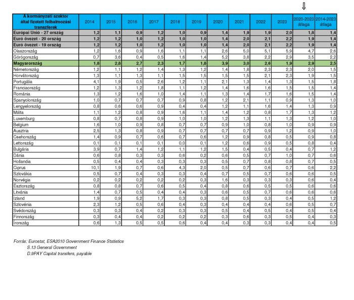 A kormányzati szektor által fizetett felhalmozási transzferek az EU országaiban, Izlandon és Norvégiában