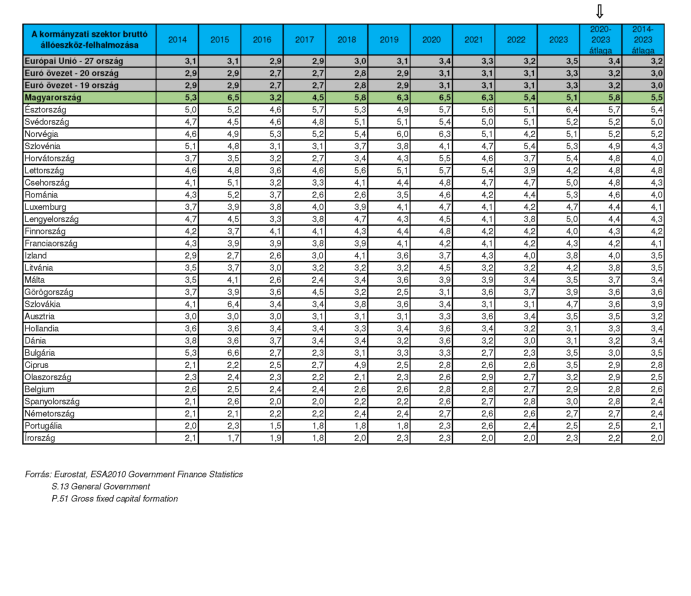 A kormányzati szektor bruttó állóeszköz-felhalmozása az EU országaiban, Izlandon és Norvégiában