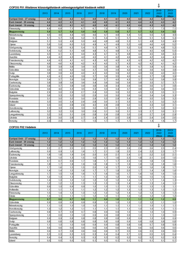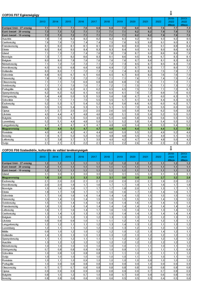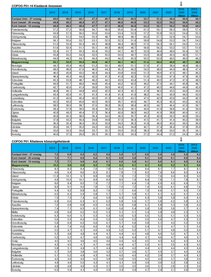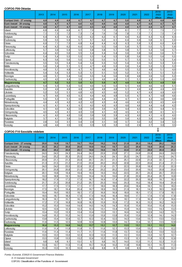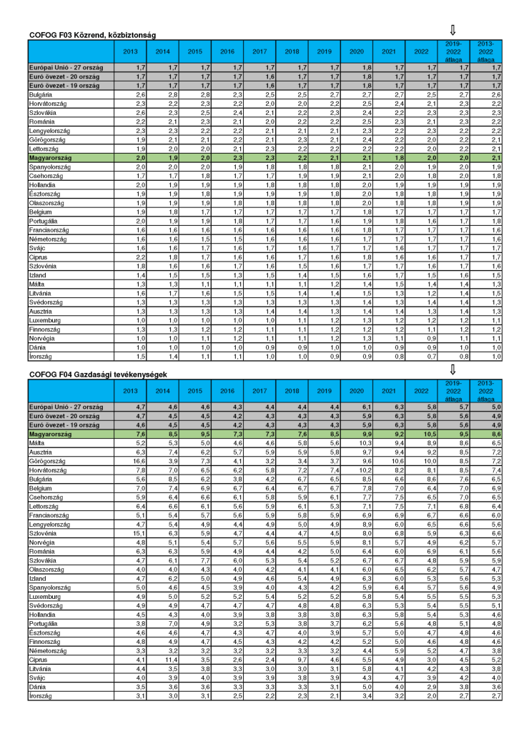 A kormányzati kiadások funkciók szerinti alakulása az Európai Unió országaiban, Norvégiában, Izlandon és Svájcban