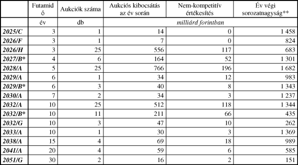 a) 4 160 939,5 millió forint összegben forint államkötvényeket értékesített belföldi és külföldi befektetőknek,