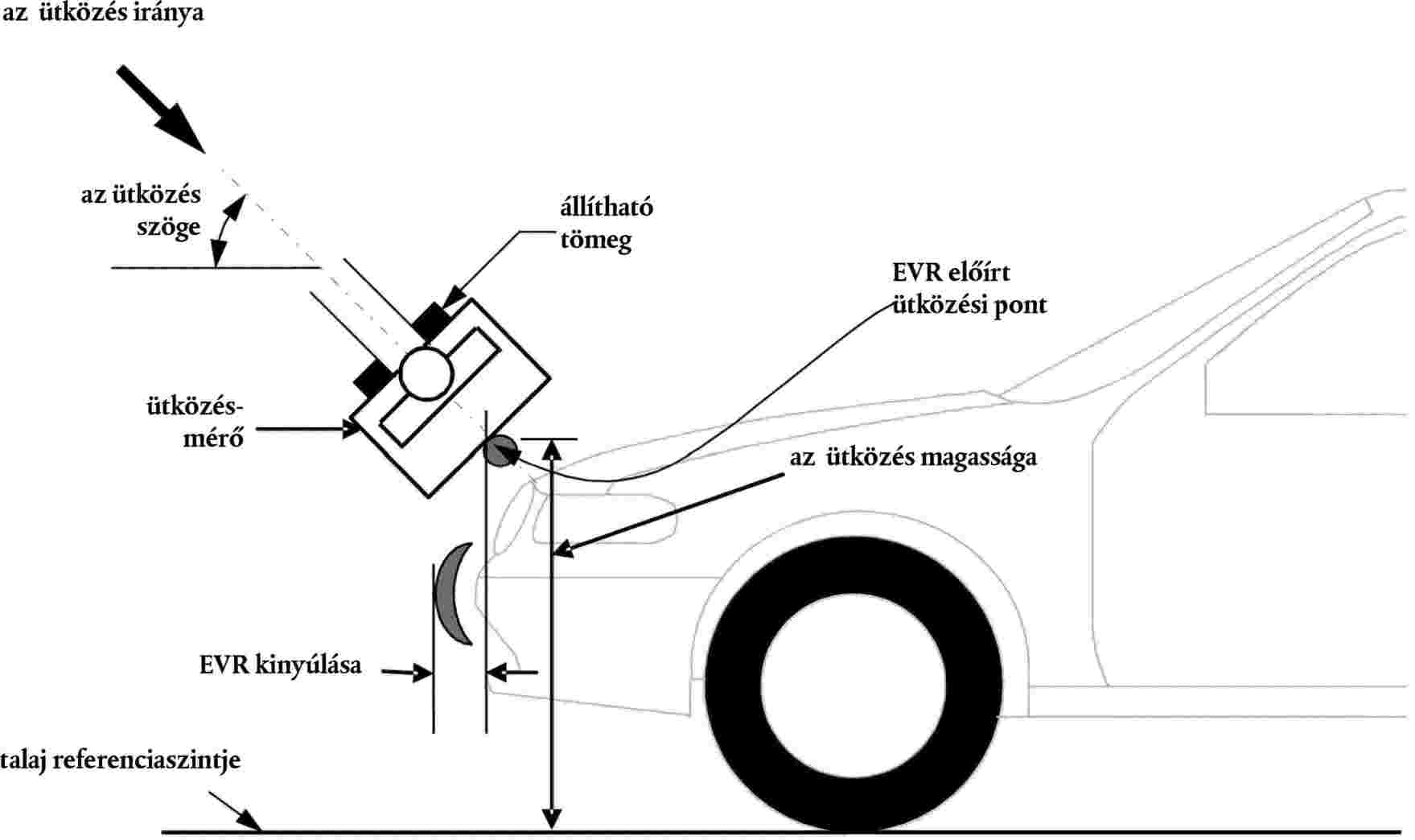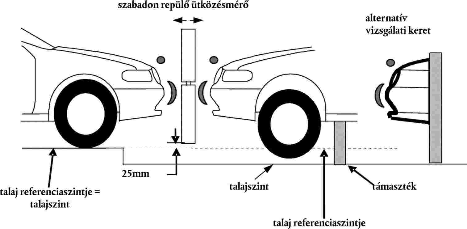 4.8. Az ütközésmérő és az elülső védelmi rendszer érintkezése során az ütközésmérő nem érintheti a talajt vagy bármilyen olyan tárgyat, amely nem része az elülső védelmi rendszernek vagy a járműnek.