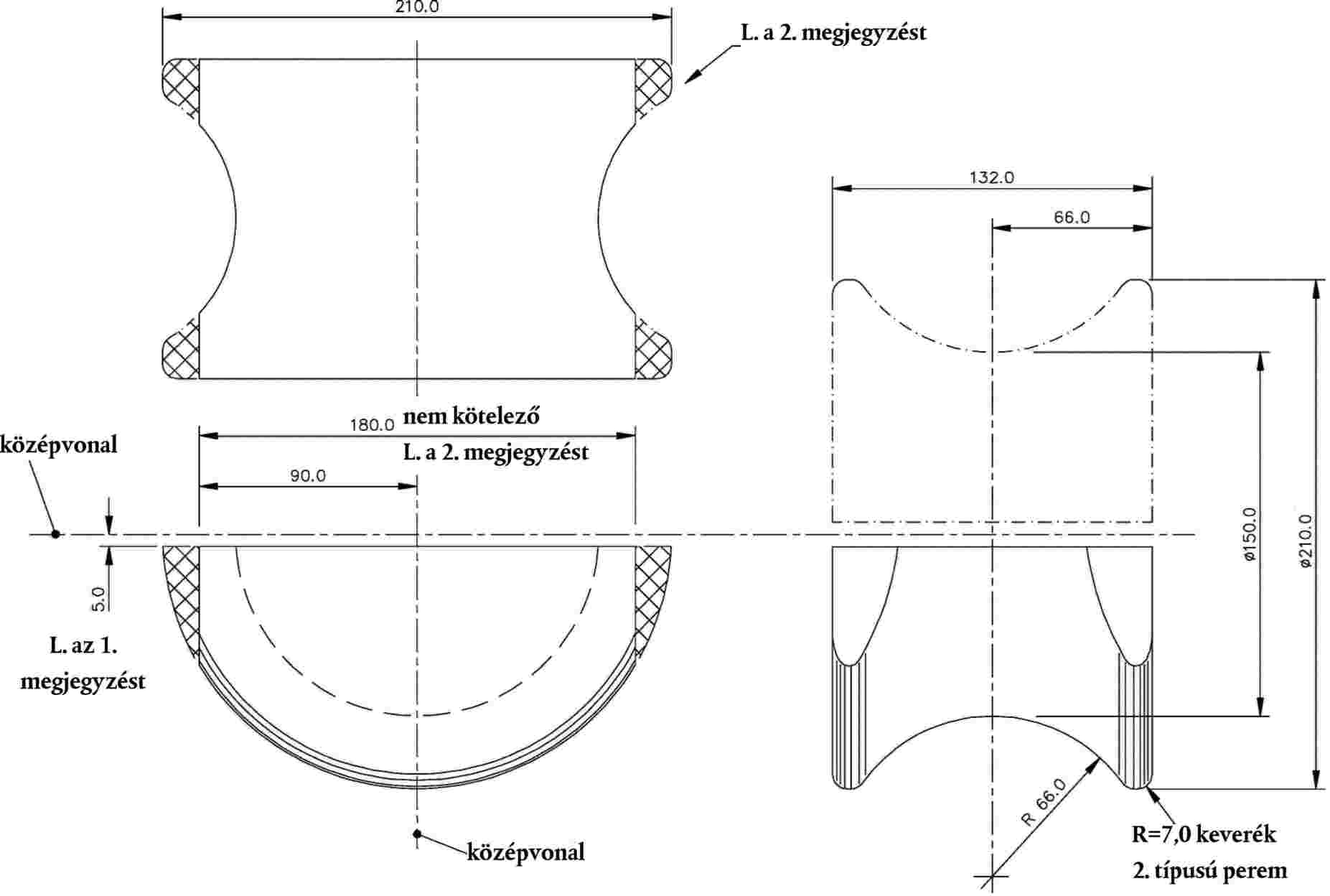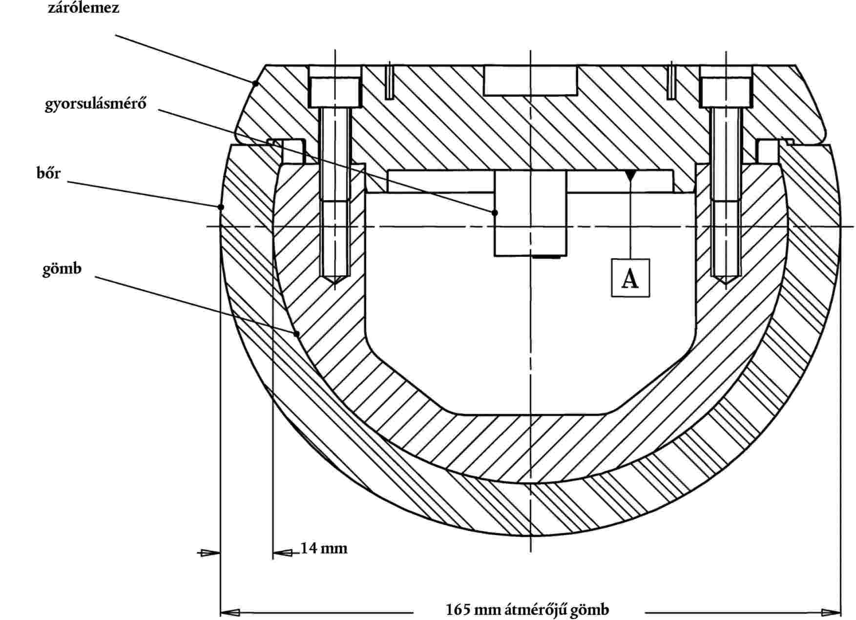 5.1. A gyermek/alacsony felnőtt fejét modellező ütközésmérő alumíniumból készült, homogén szerkezetű gömb legyen. Átmérője 165 ± 1 mm, tömege 3,5 ± 0,07 kg legyen.