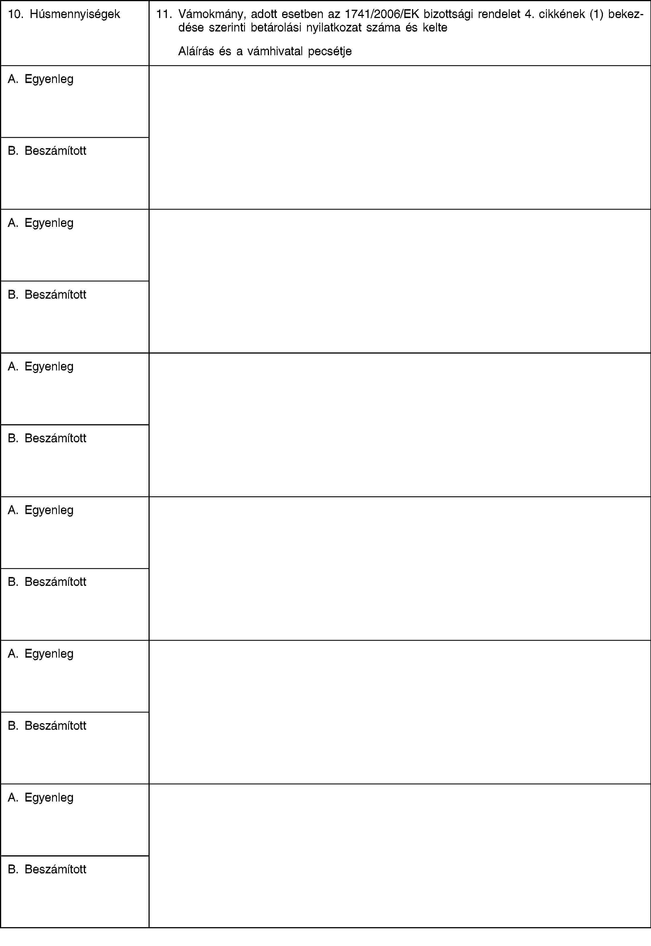 11. Vámokmány, adott esetben az 1741/2006/EK bizottsági rendelet 4. cikkének (1) bekezdése szerinti betárolási nyilatkozat száma és kelte