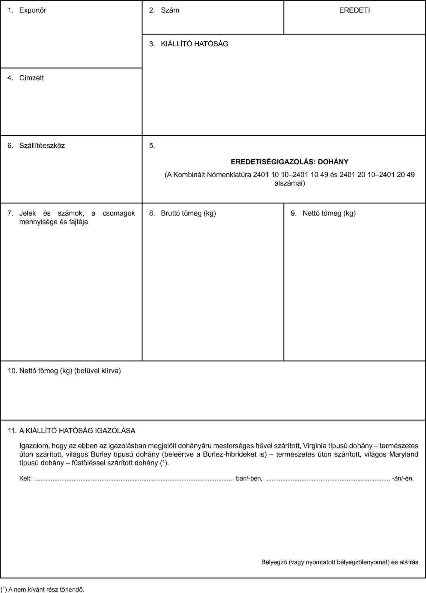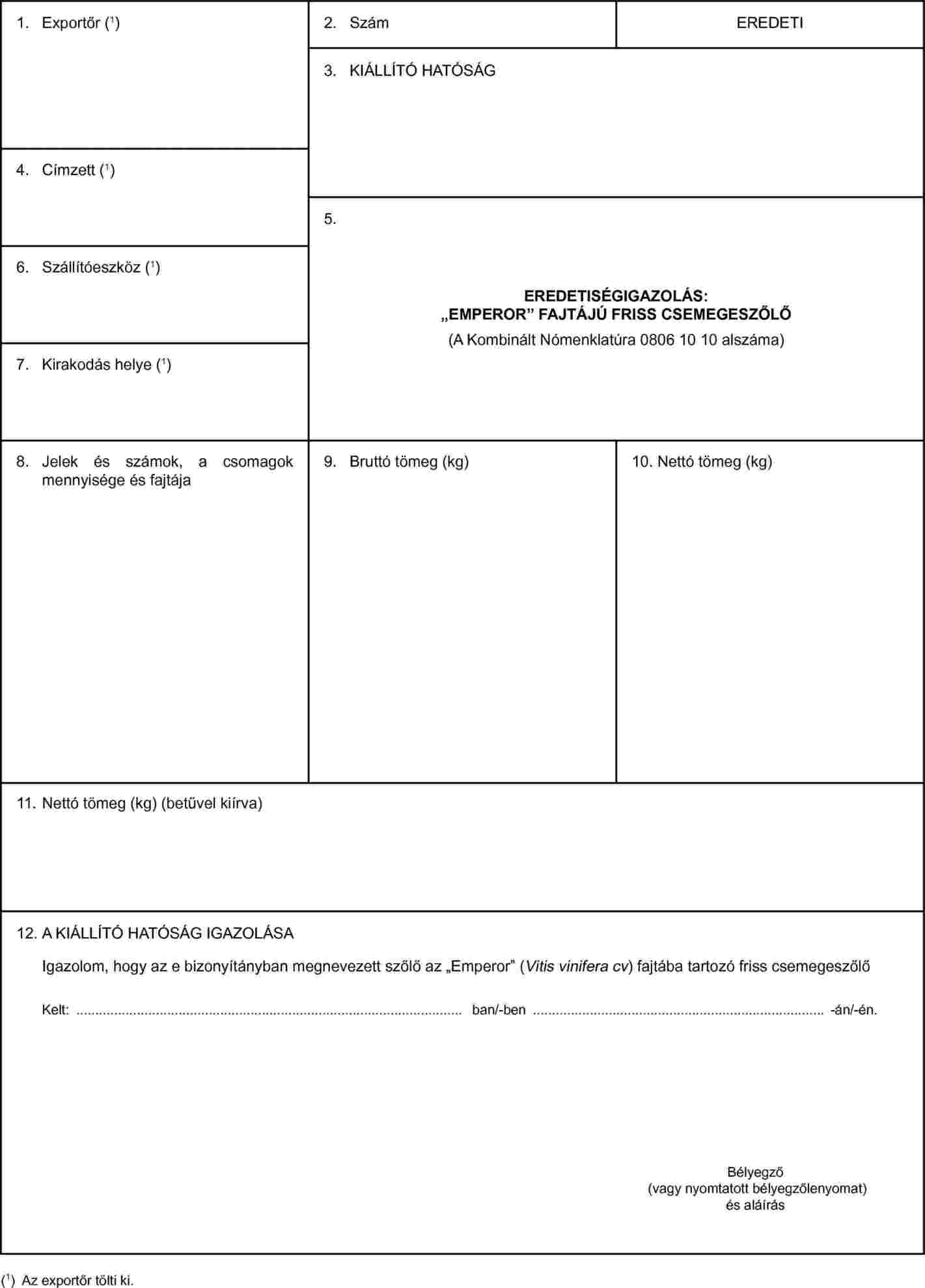 (112) Autonóm vámtétel: 12,8 + 0,7 €/100 kg/net.