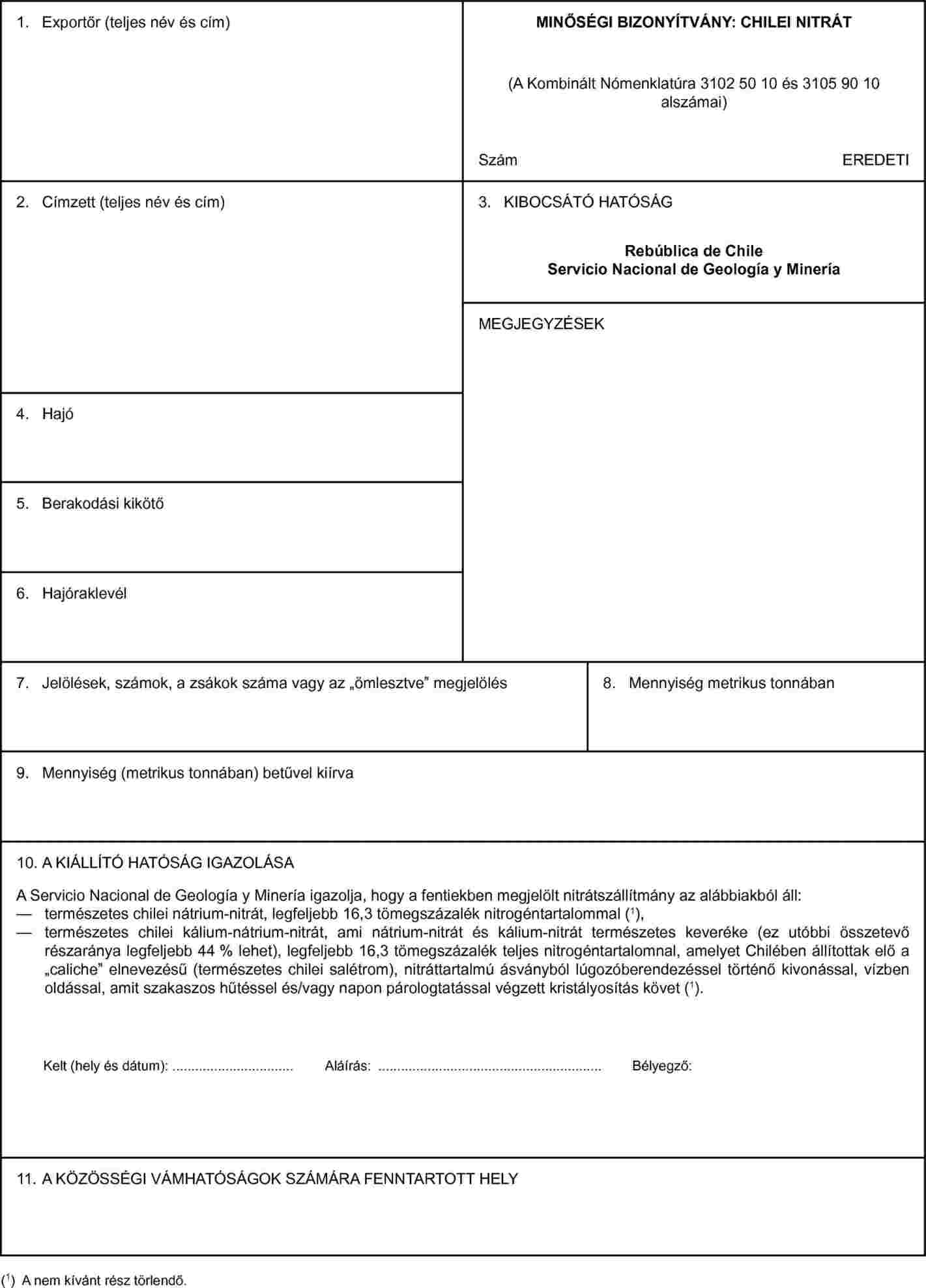 A vámalakiságok elvégzésénél az érintett személynek - az adott esettől függően - a megfelelő nyilatkozatban fel kell tüntetnie a következő bejegyzést: "egyedüli tejösszetevő: kazein/kazeinát".