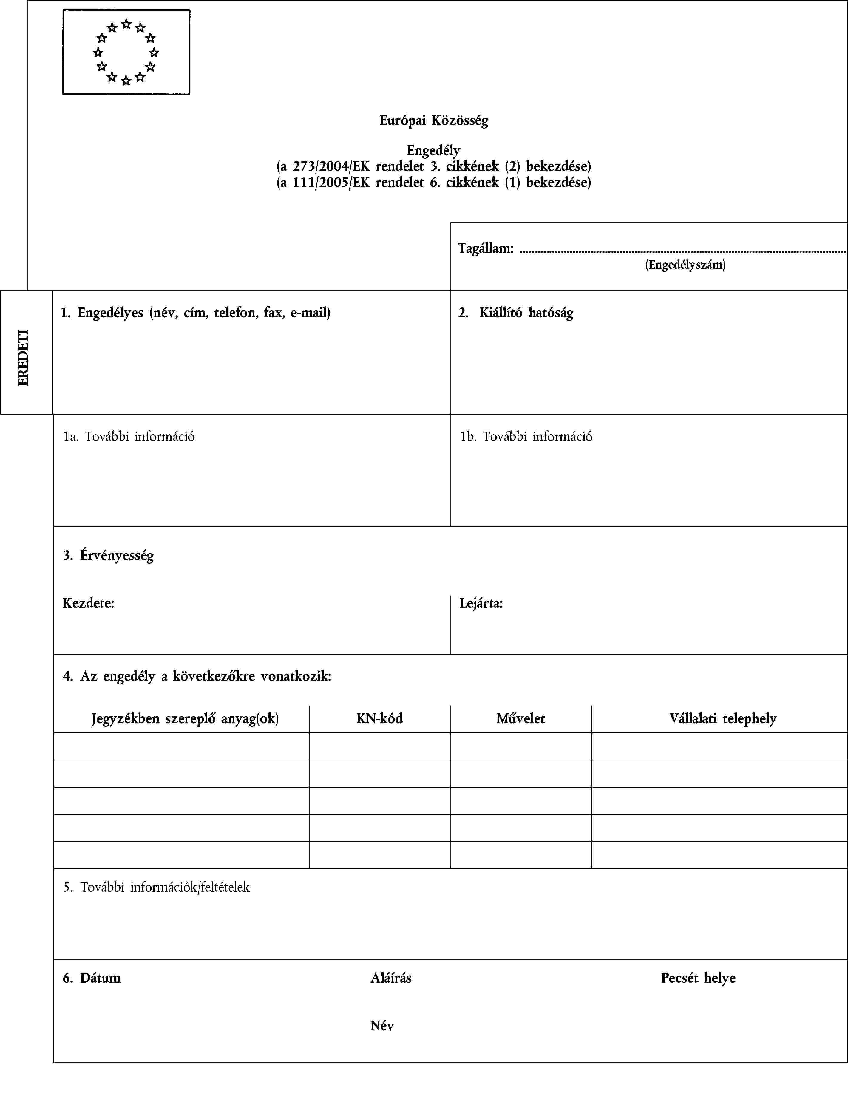 (1) A 273/2004/EK rendelet 3. cikkének (2) bekezdése alapján az engedély megszerzése érdekében az érintett gazdasági szereplőnek írásos kérelmet kell benyújtania.