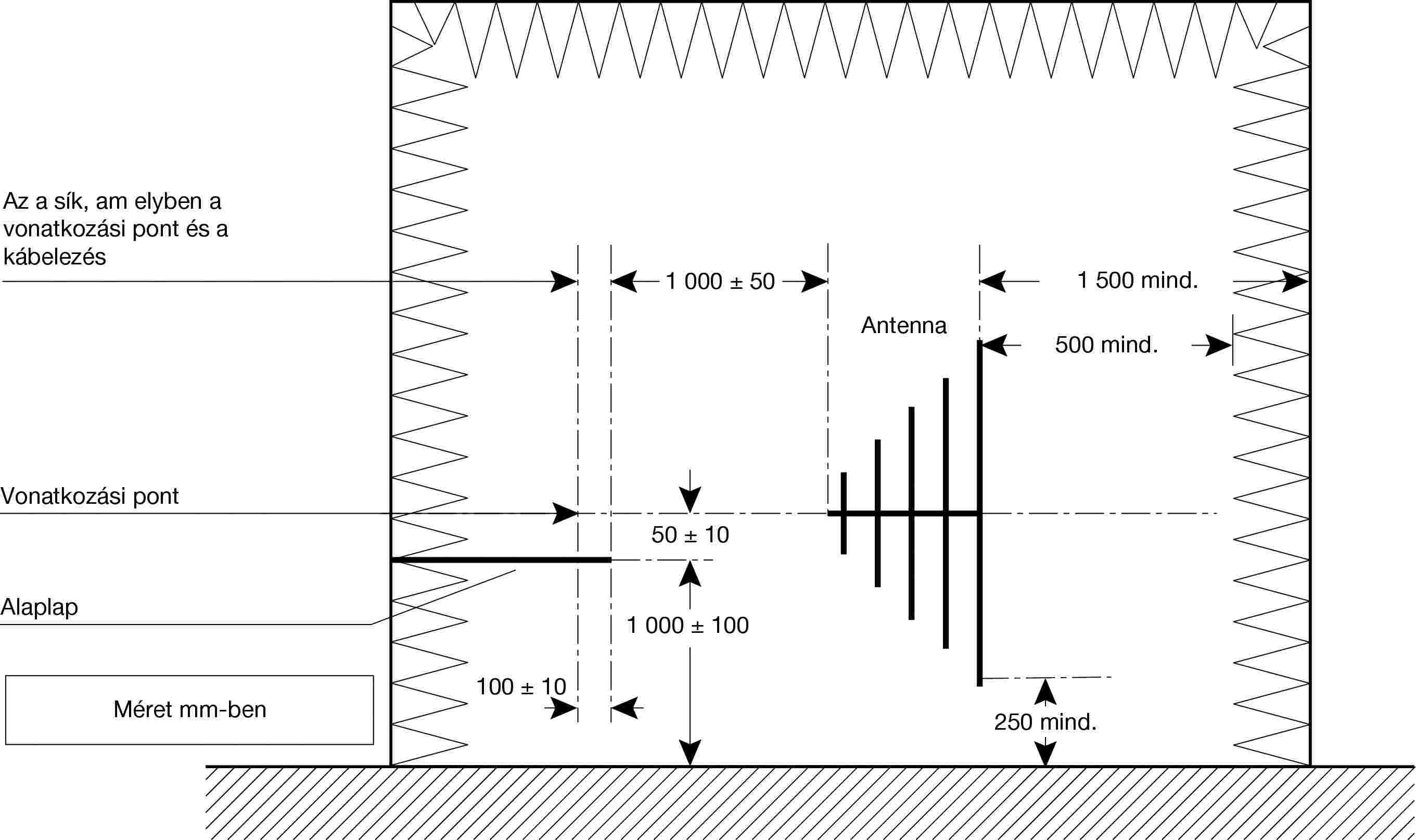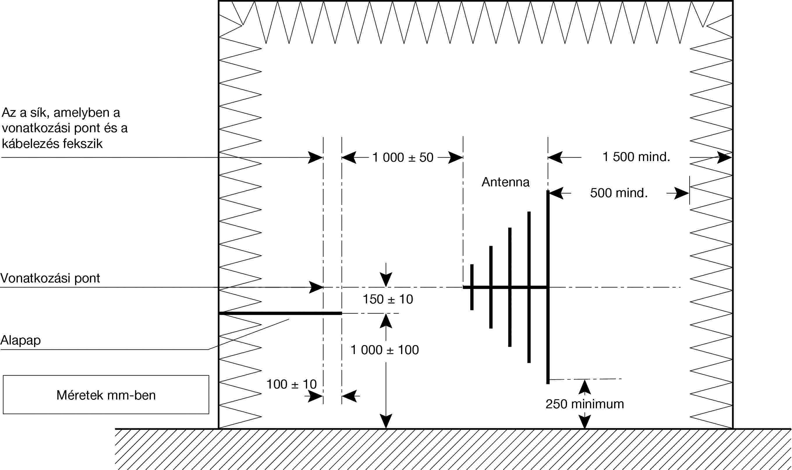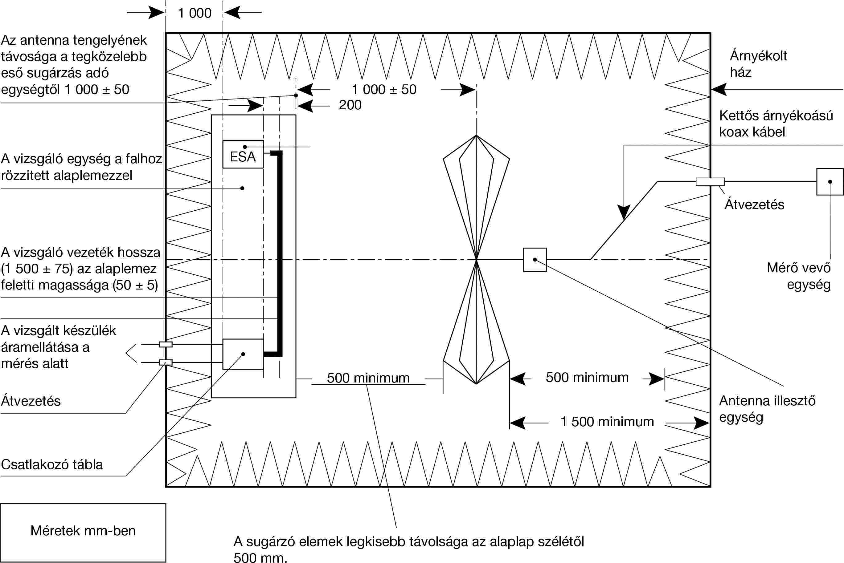 | 2. ábra | Egy EUB által kisugárzott elektromágneses zavarok vizsgálati elrendezésének hosszmetszete | ||