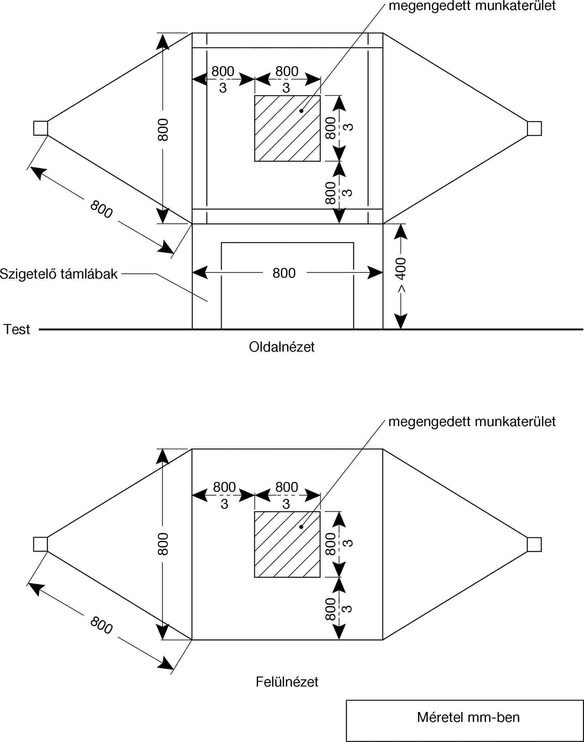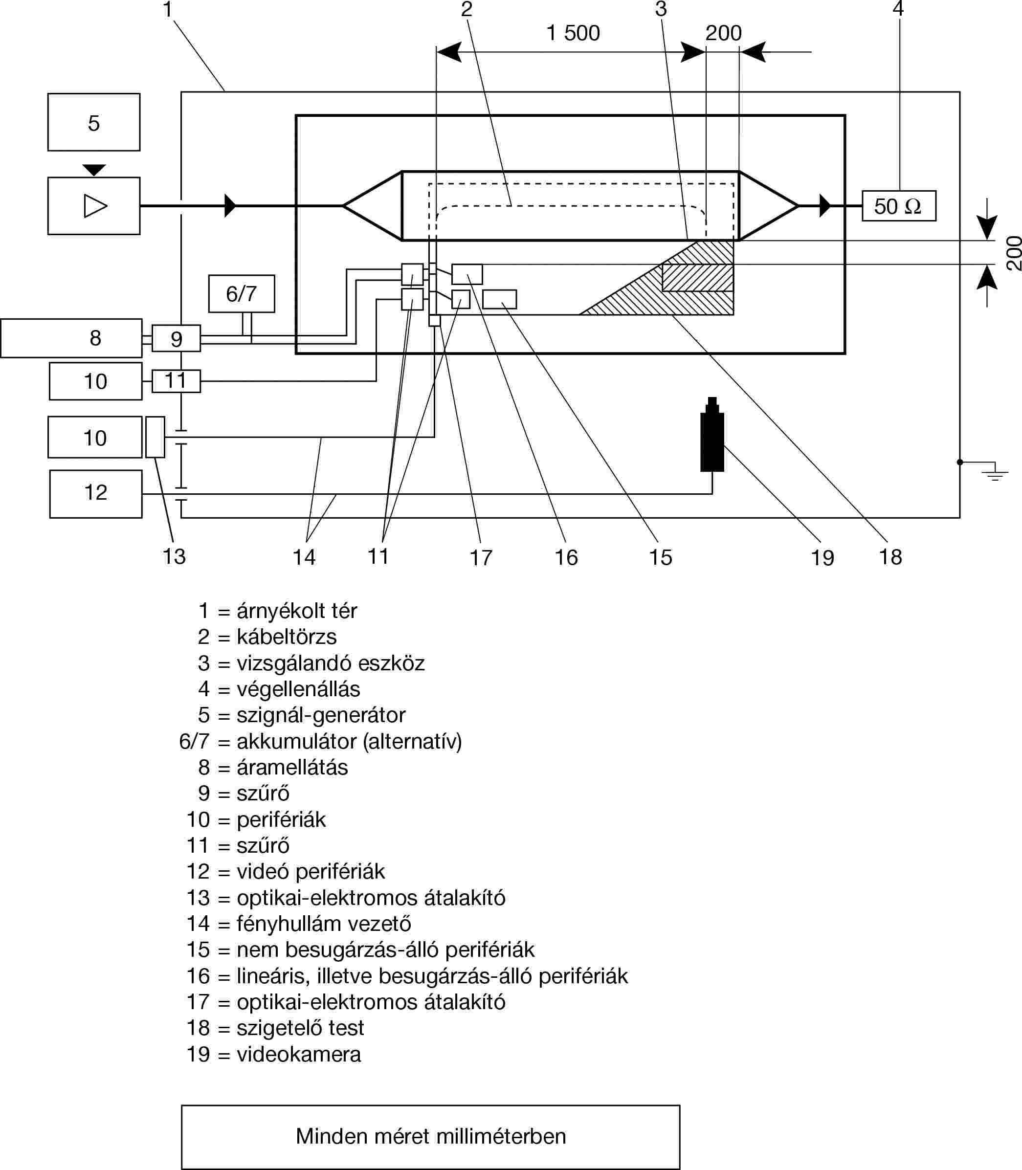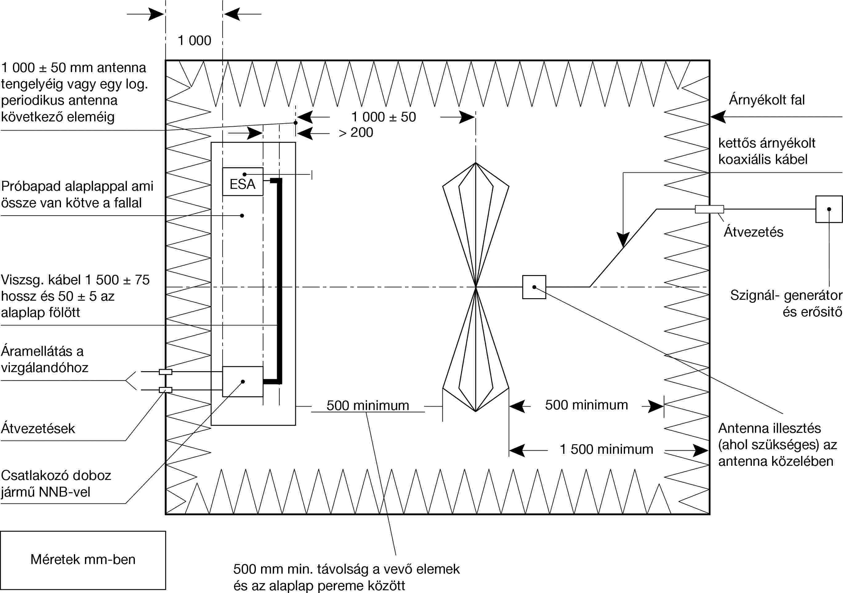 | 2. ábra | Egy EUB által kisugárzott elektromágneses zavarok vizsgálati elrendezésének hosszmetszete | ||