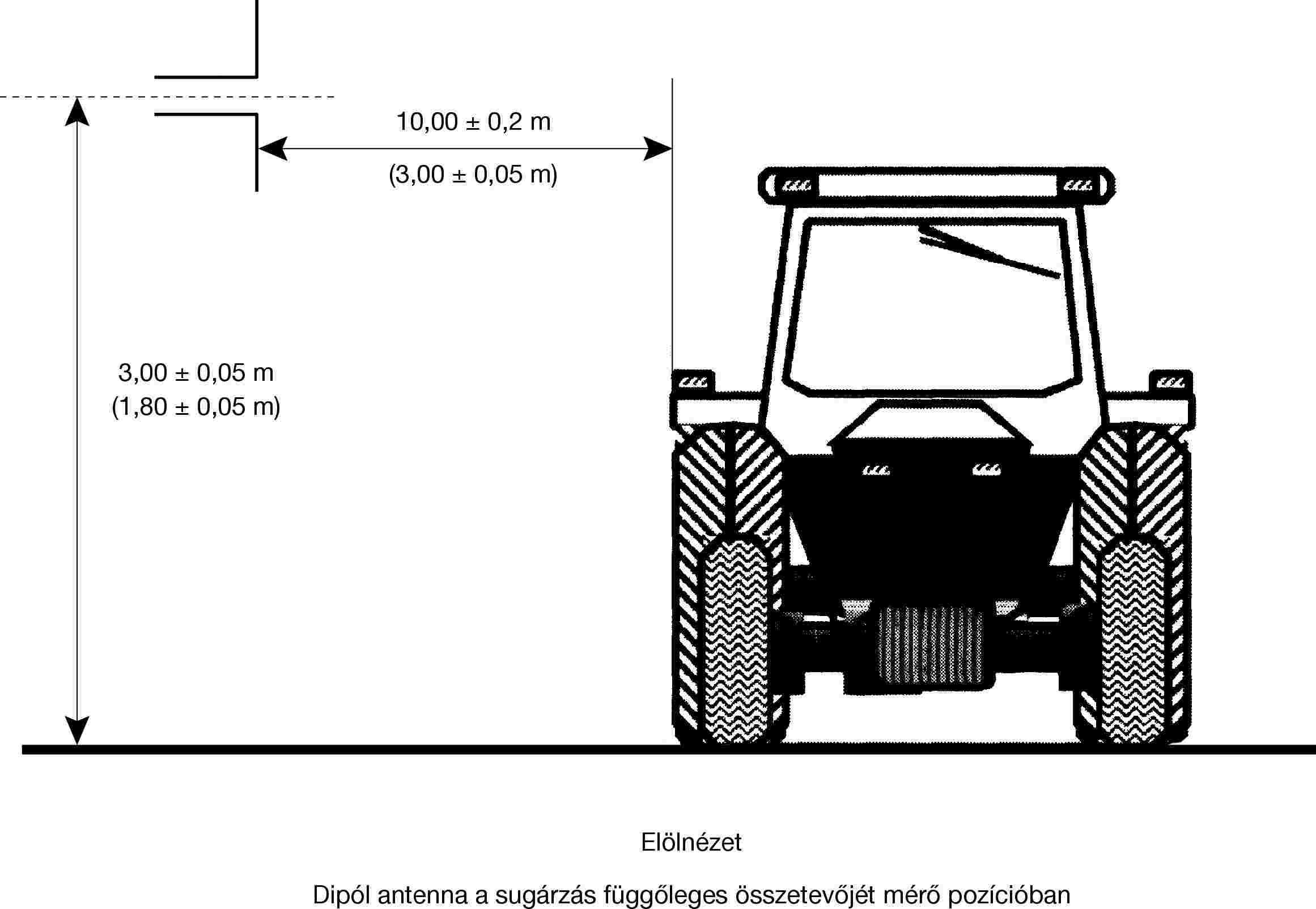 | 4. függelék | Keskeny sávú vonatkozási határértékek járművekre: Antenna – jármű távolság: 3 m | ||