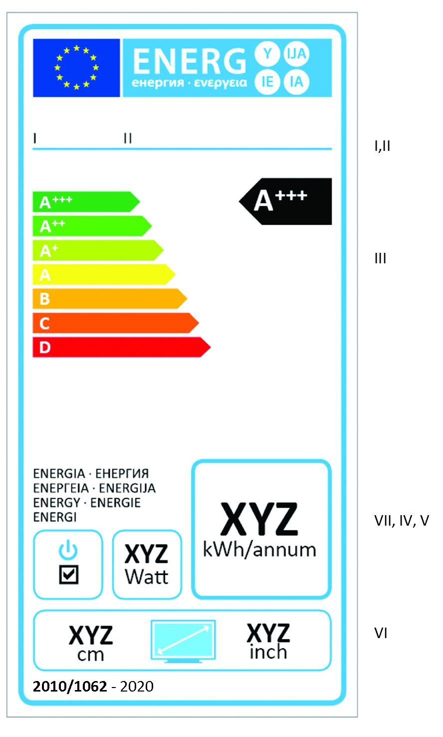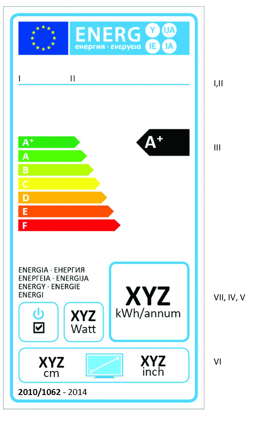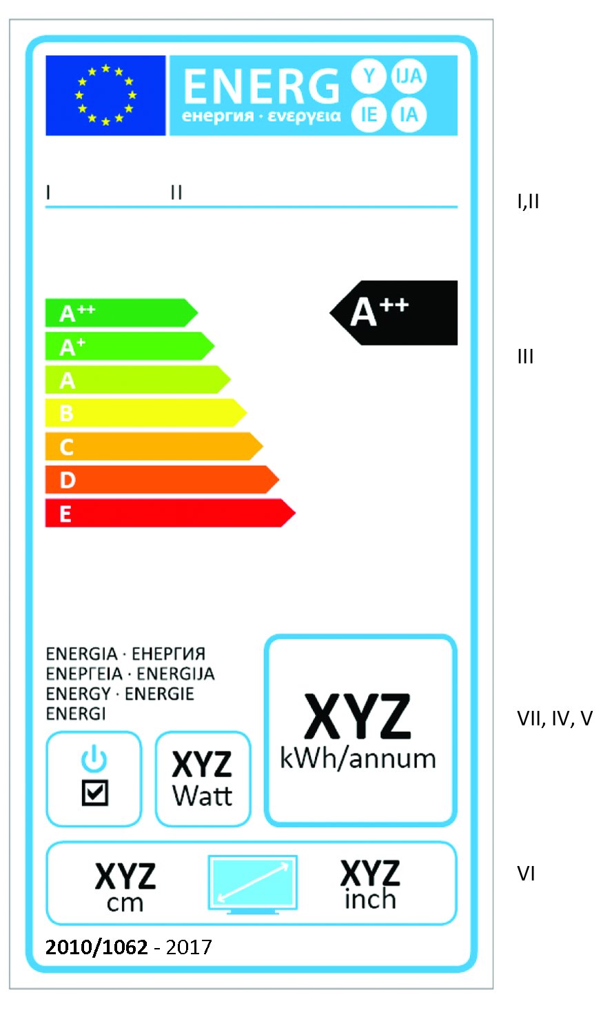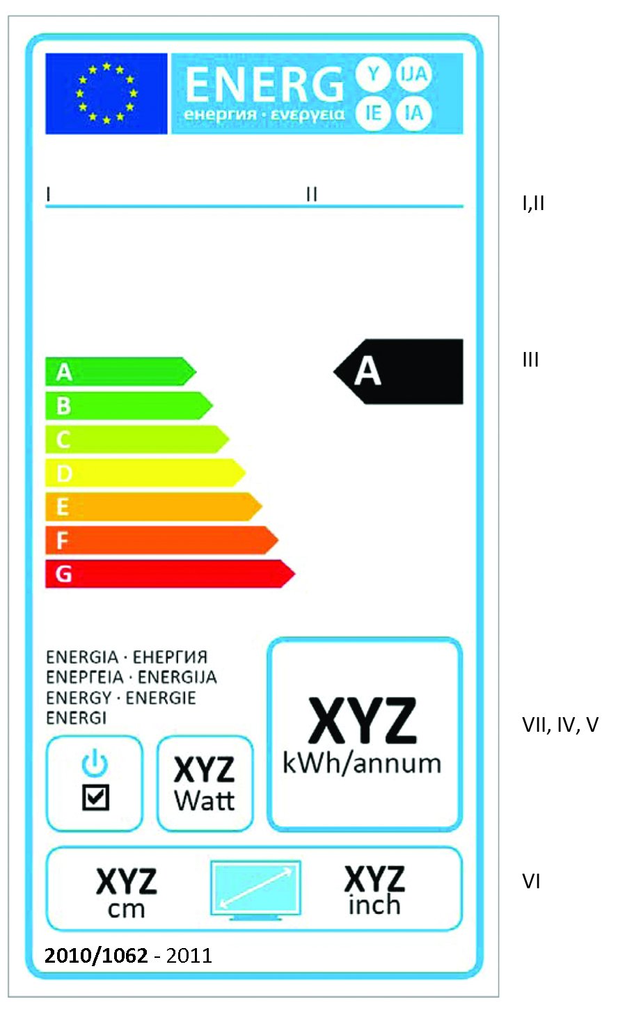 A Bizottság 1062/2010/EU felhatalmazáson alapuló rendelete ( 2010. szeptember 28. ) a 2010/30/EU európai parlamenti és tanácsi irányelvnek a televíziókészülékek energiafogyasztásának címkézése tekintetében történő kiegészítéséről