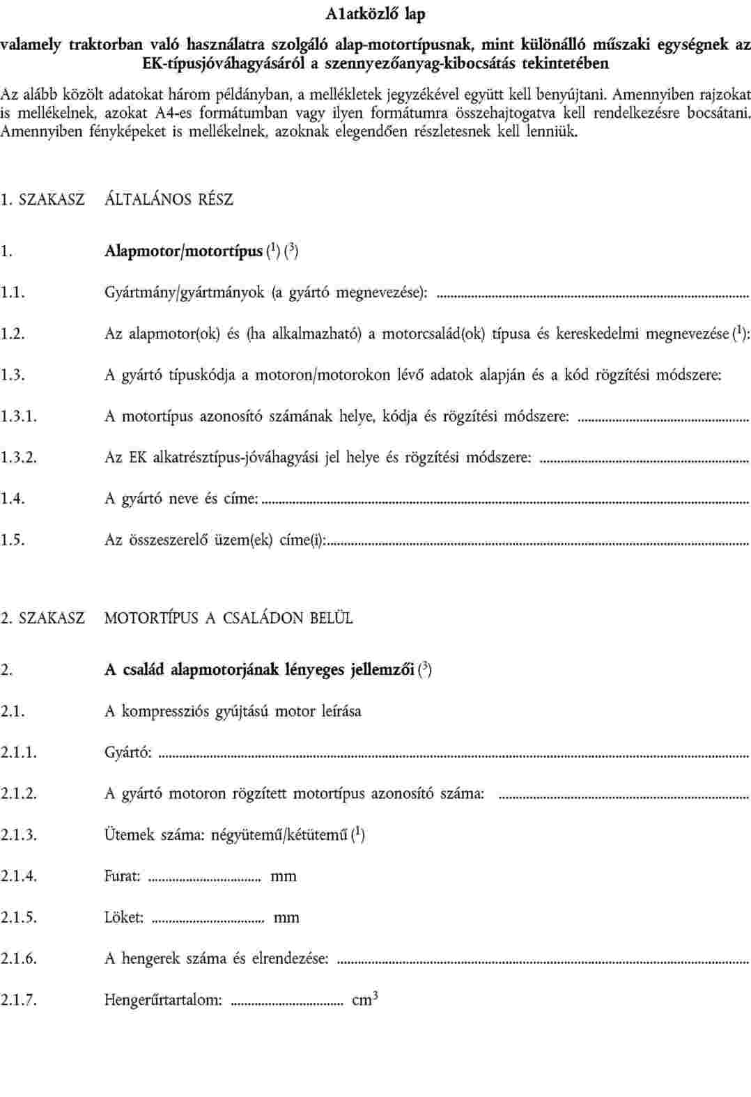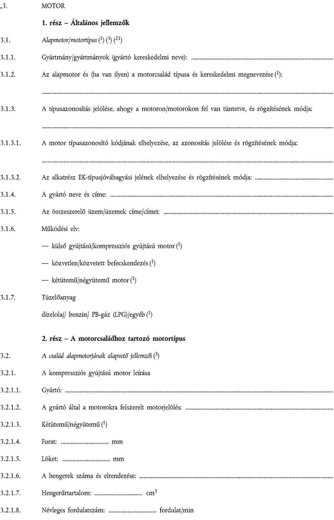A 2003/37/EK irányelv I. mellékletében az "A" minta 3. szakasza ("Motor") helyébe a következő lép: