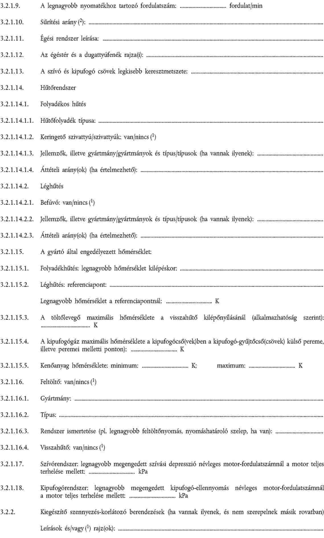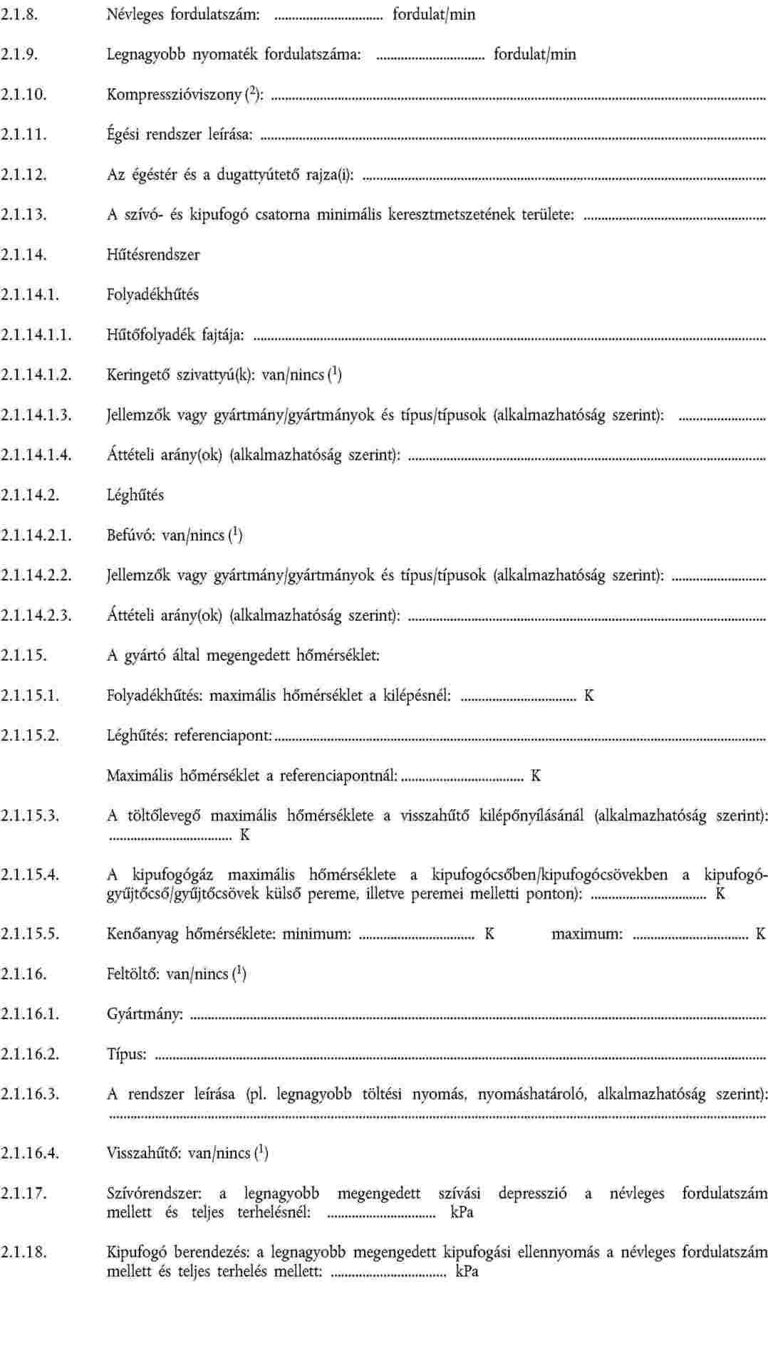 "2.1.17. Szívórendszer: legnagyobb megengedhető szívási depresszió a névleges fordulatszám és teljes terhelés mellett: ... kPa