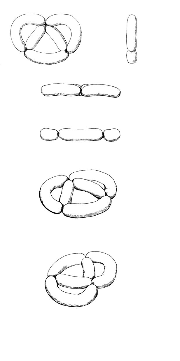27. Végeredményben meg kell állapítani, hogy ezt a megállapítást nem kérdőjelezi meg a felperes. Ugyanis maga a felperes azt állítja, hogy a bejelentett forma érzékelhetően több kolbász olyan elrendezése, amely a perec formájára hasonlít, azonban nem veszi fel teljesen ezt a formát. Ebből következően helyes a fellebbezési tanács azon álláspontja, hogy a térbeli védjegy, amelynek lajstromozását kérték, öt különálló kolbász együtteséből áll, amelyeknek a végei összekapcsolódnak. A jelen esetben tehát a kolbászok elrendezési formájának megkülönböztető képességét kell megvizsgálni az ezen elrendezés által keltett összbenyomás figyelembevételével.