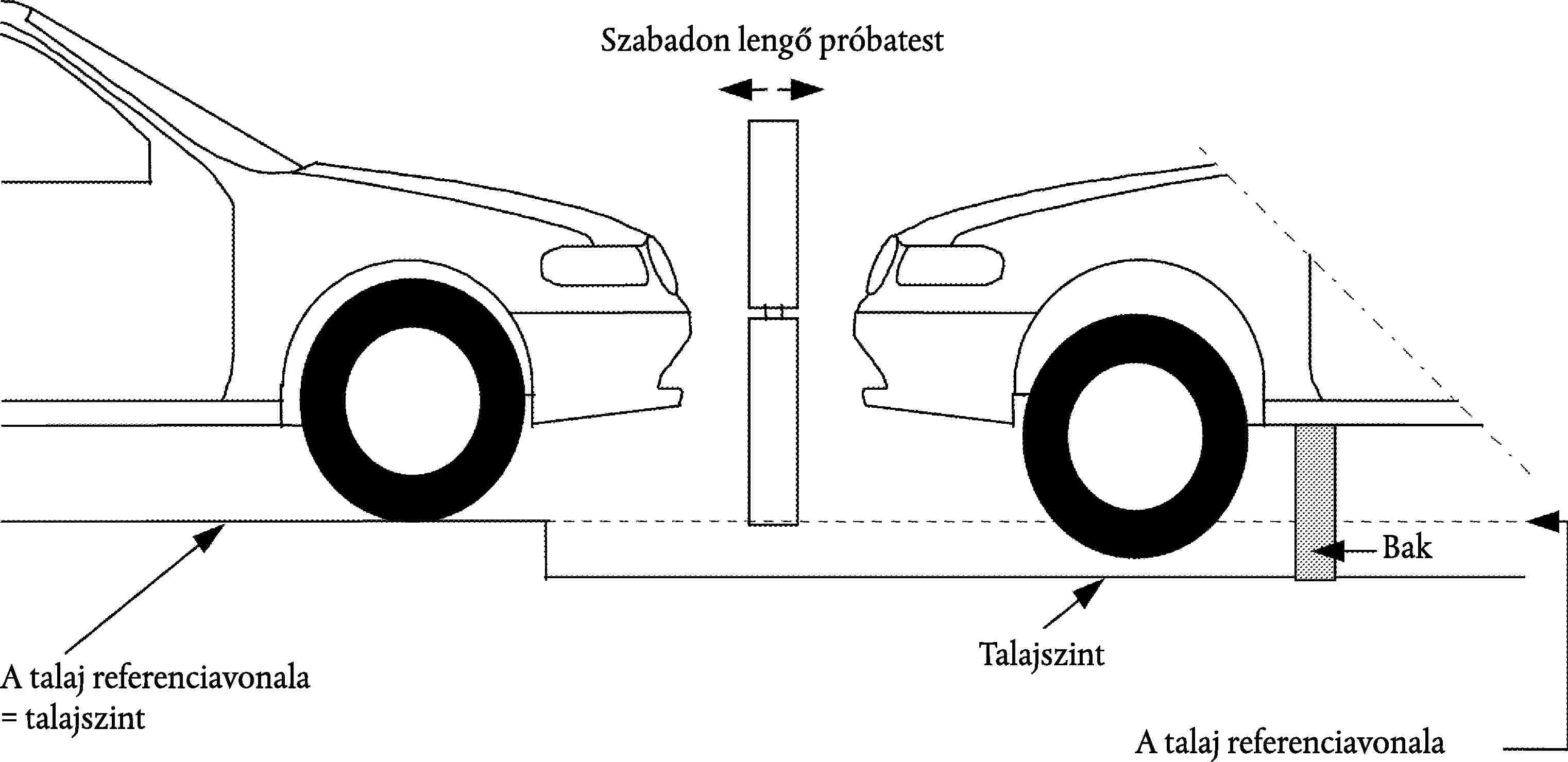 Ha az eljárás során az egyenes mérőrúd érintkezésbe lép a lökhárító felső élével, akkor azt is a motorházfedél elülső élének kell tekinteni.